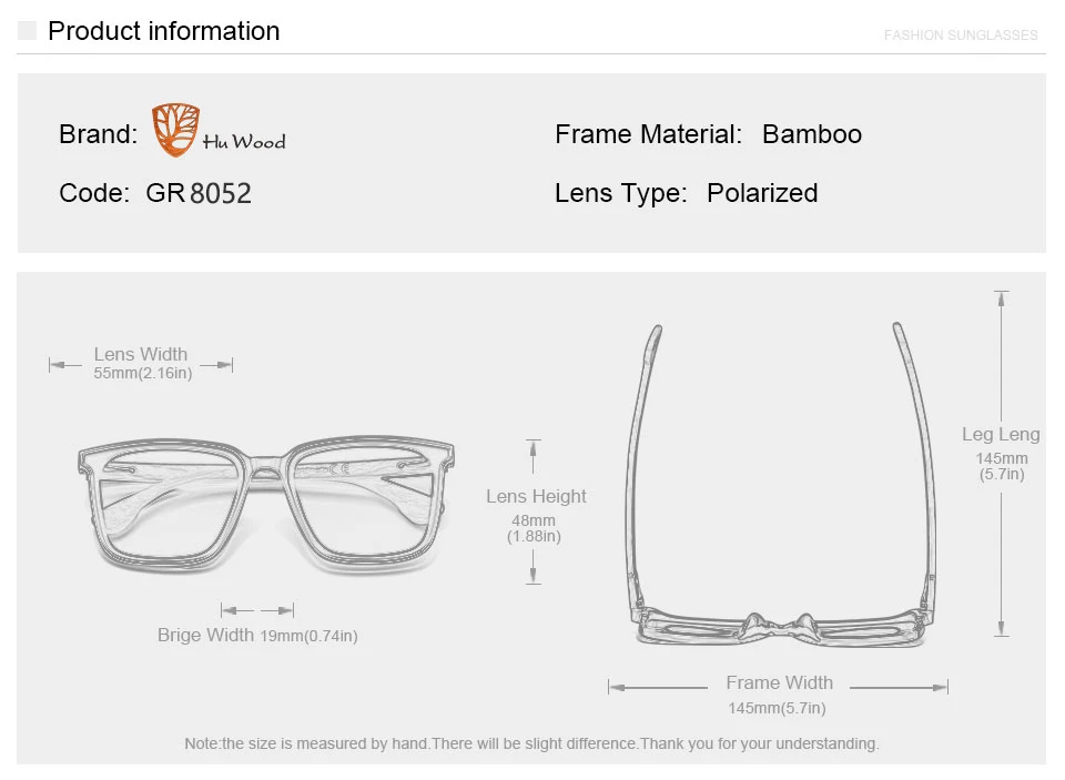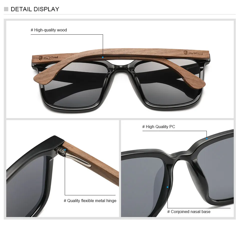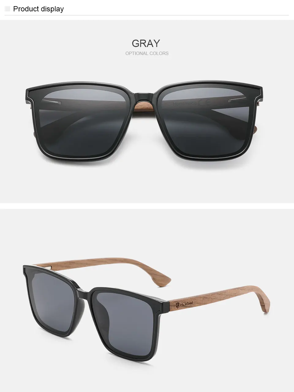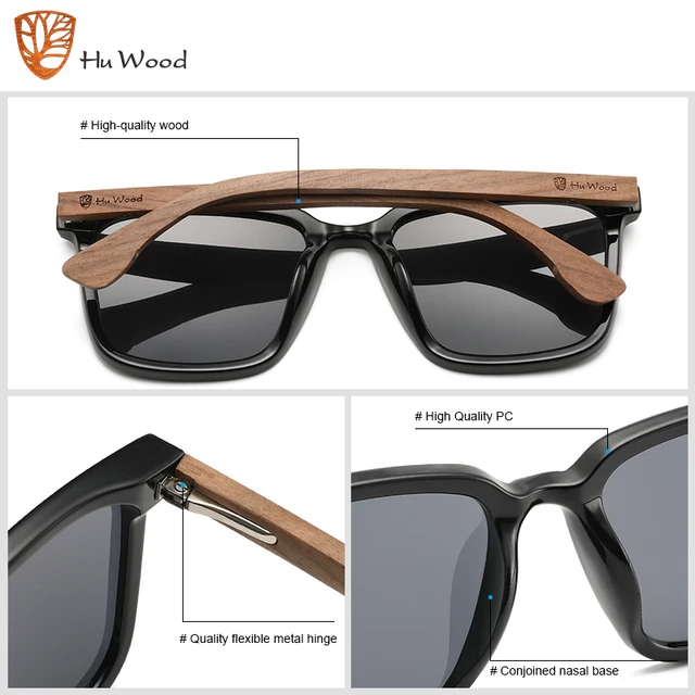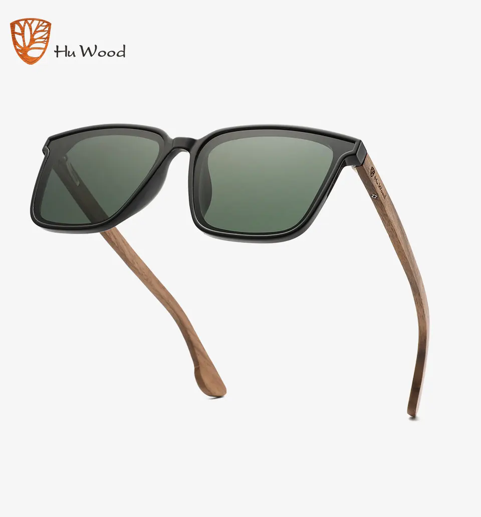 Hu Wood Square Men Women Sunglasses Polarized Sun Glasses Blue Lenses Wooden Legs Shades Uv400 GR8052