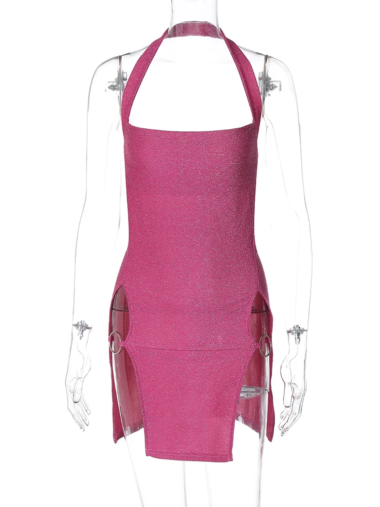 Women Sexy Hollow Out Sequin Halter Maxi Dresses Fashion Pleated Backless Sleeveless Slim Dress Chic New Lady Evening Party Gown