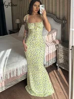 Elegant Floral Ocean Dress for Women Ankle Length Polyester Fiber Independent Station Cross-border 2025 Dress