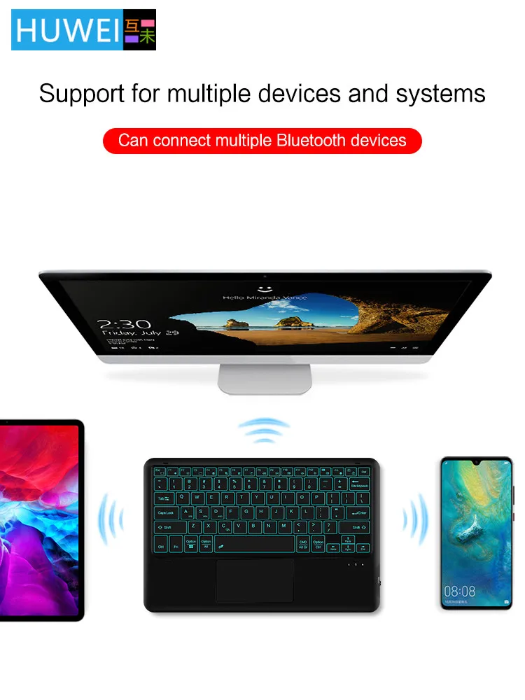 HUWEI For iPad Phone Keyboard Backlight Wireless Keyboard Bluetooth for Samsung Huawei iPad Surface Lenovo
