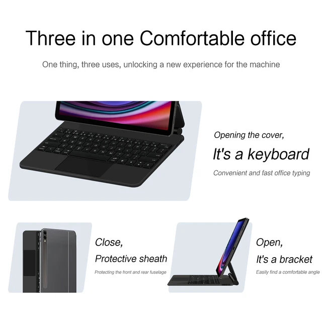 HUWEI Magic Keyboard For Samsung Galaxy Tab S9 FE Plus S7 FE S8 Plus 12.4" Tablet Smart Case Portuguese Spanish Korean keyboard