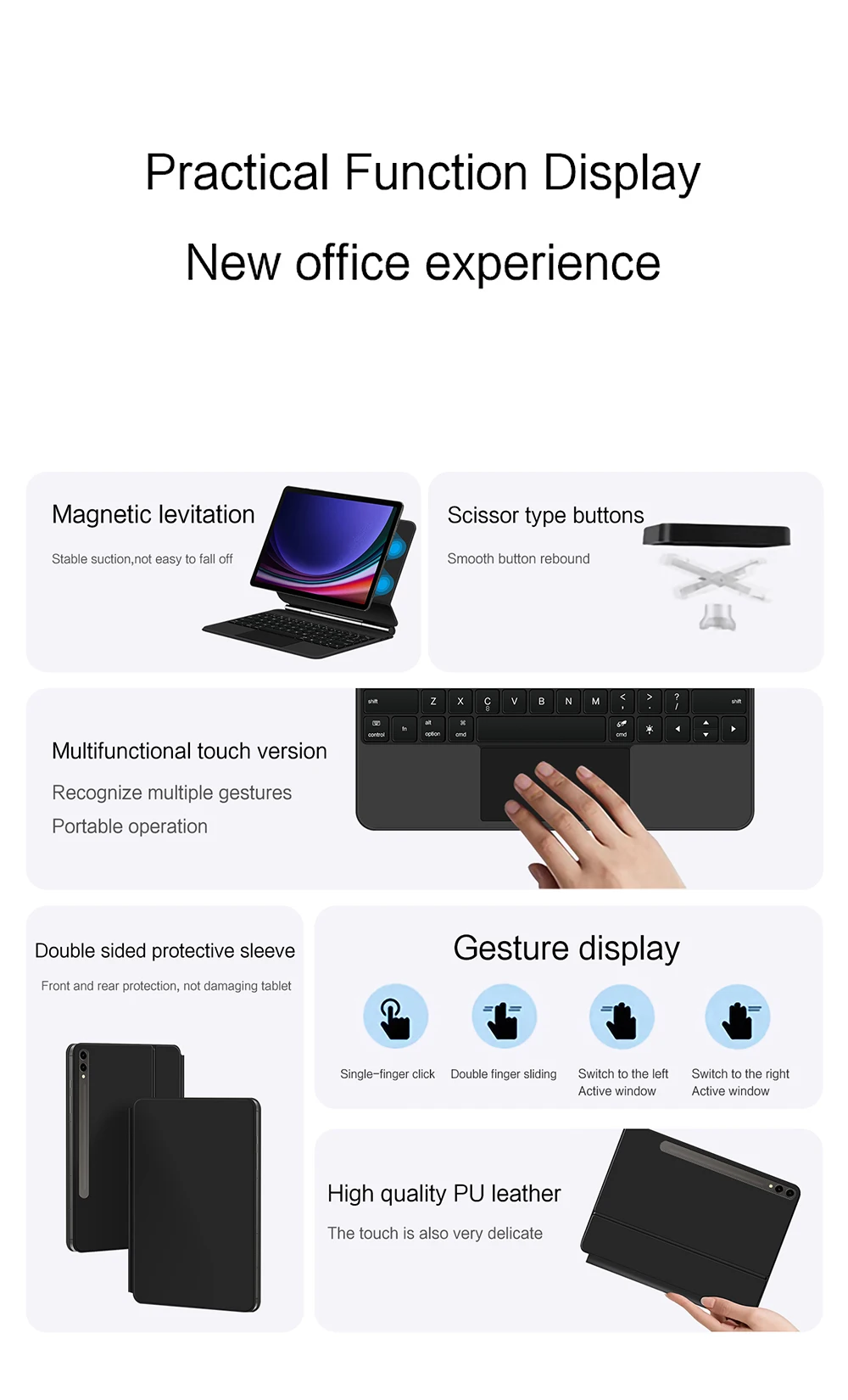 Magnetic adsorption, backlight, touch panel, multi angle support、Wireless Bluetooth