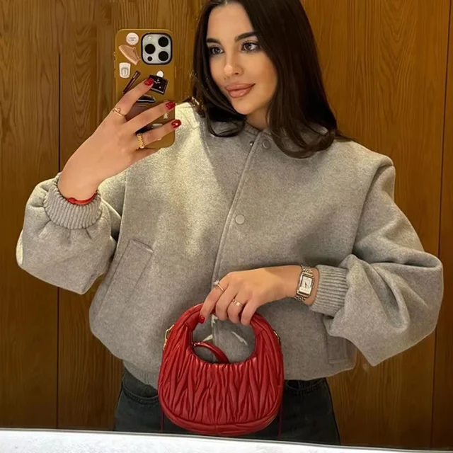 Women's Mid-Length Hooded Double-Sided Woolen Jacket Autumn Winter Fashion Casual Loose Top Polyester Fiber Full Sleeve