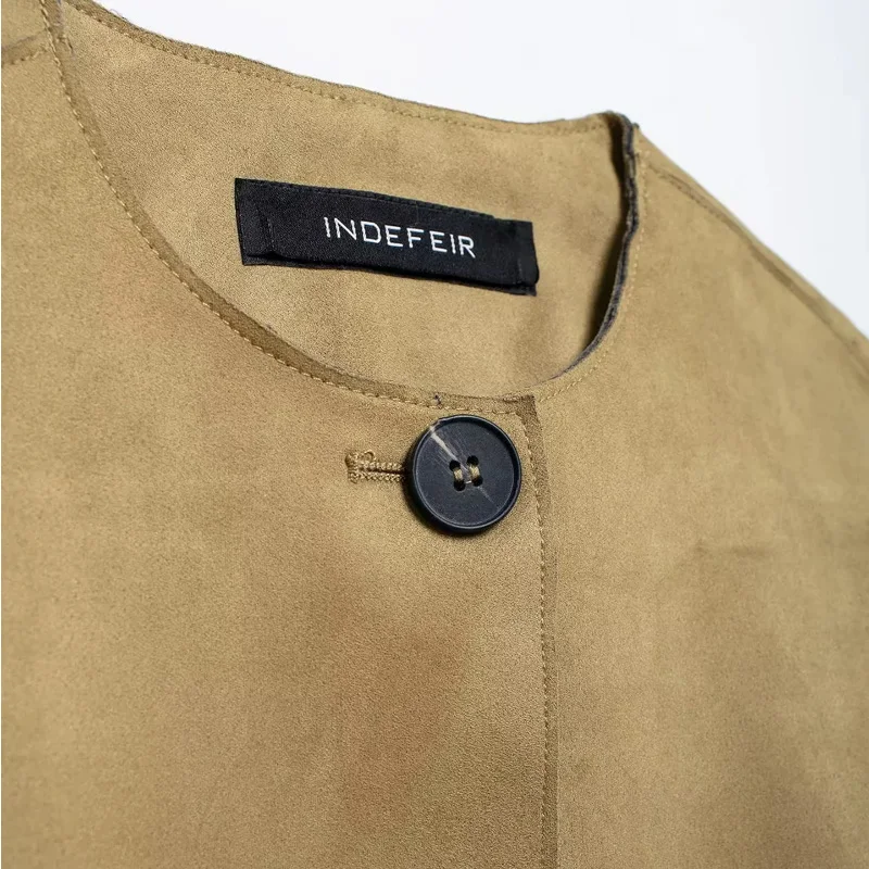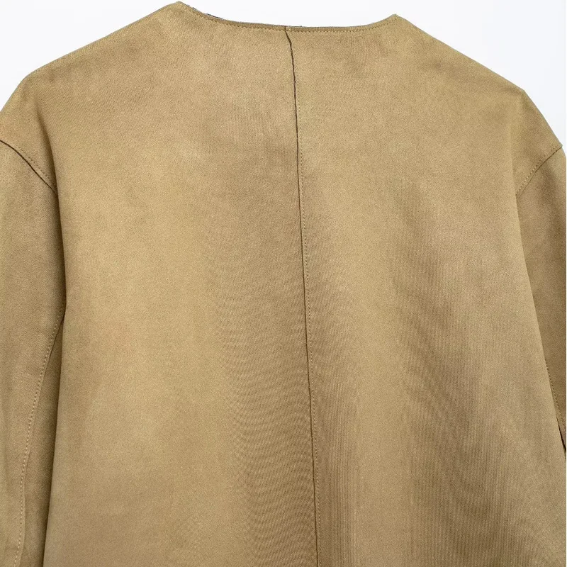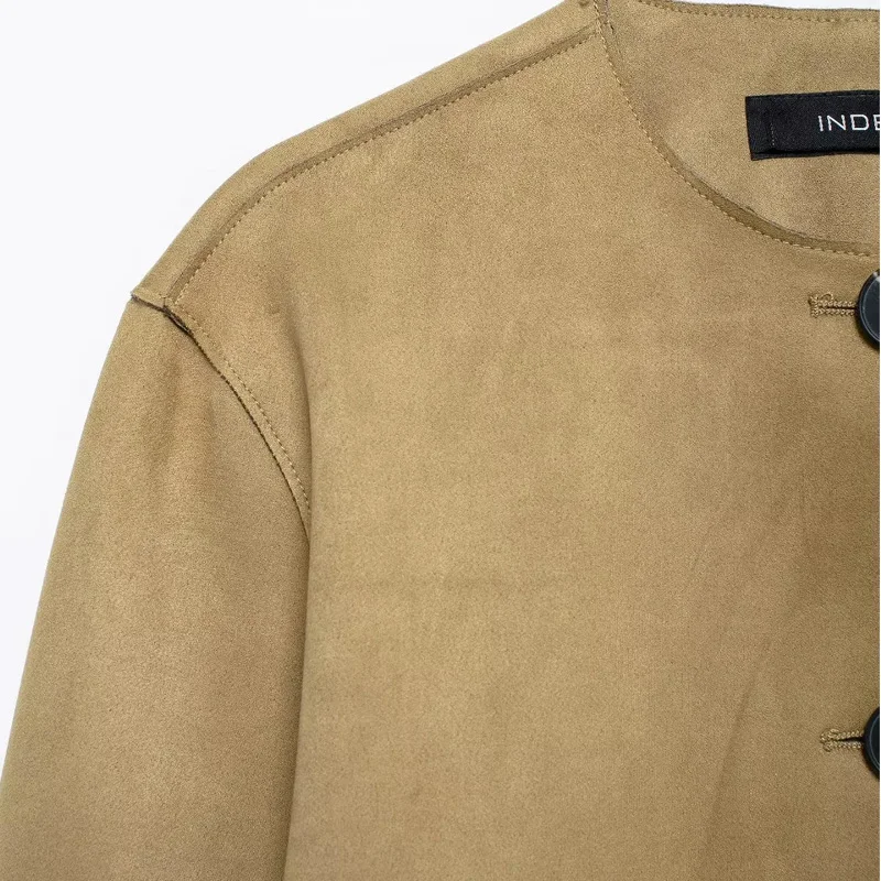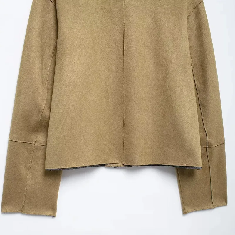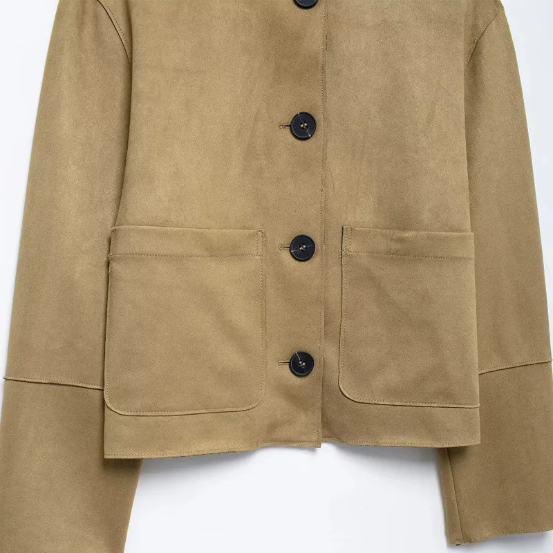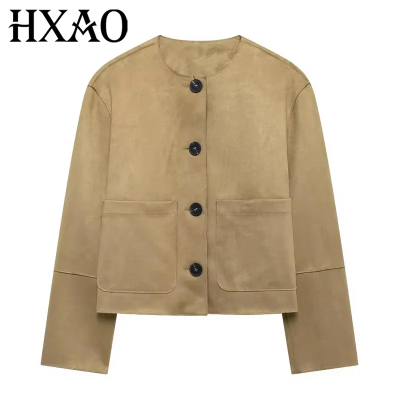 HXAO Jackets Outerwears Cropped Suede Jacket Women Autumn Demi-Season Long Sleeve Coats Casual Button