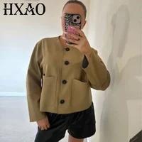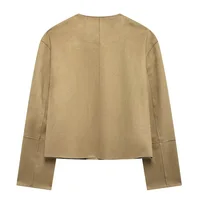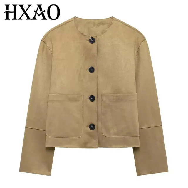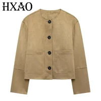 HXAO Jackets Outerwears Cropped Suede Jacket Women Autumn Demi-Season Long Sleeve Coats Casual Button