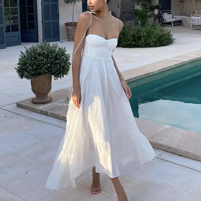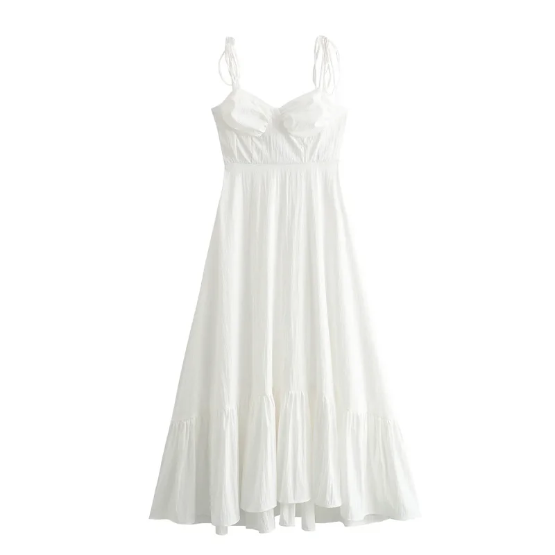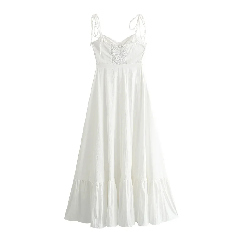 HXAO White Long Dresses 2024 Women Summer Elegant Evening Party Butterfly Midi Dress Ladies Fashion Pleated