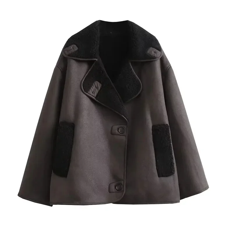 UNIZERA 2023 Autumn/Winter New Women's Wear New Fashion Casual Loose Versatile Leather and Fur One Piece Jacket Coat