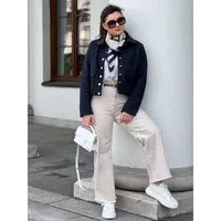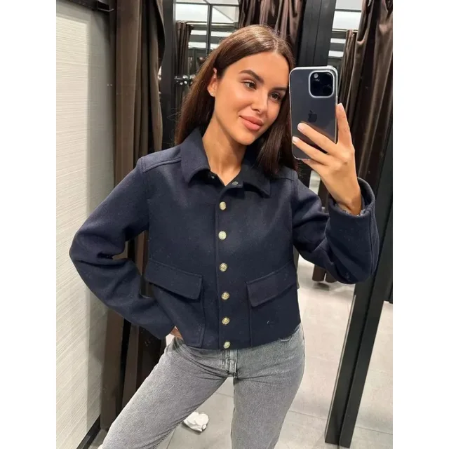 HXAO Women’s Aviator Black Jacket Wool & Blends Coats Cropped Bomber Jacket Autumn Winter