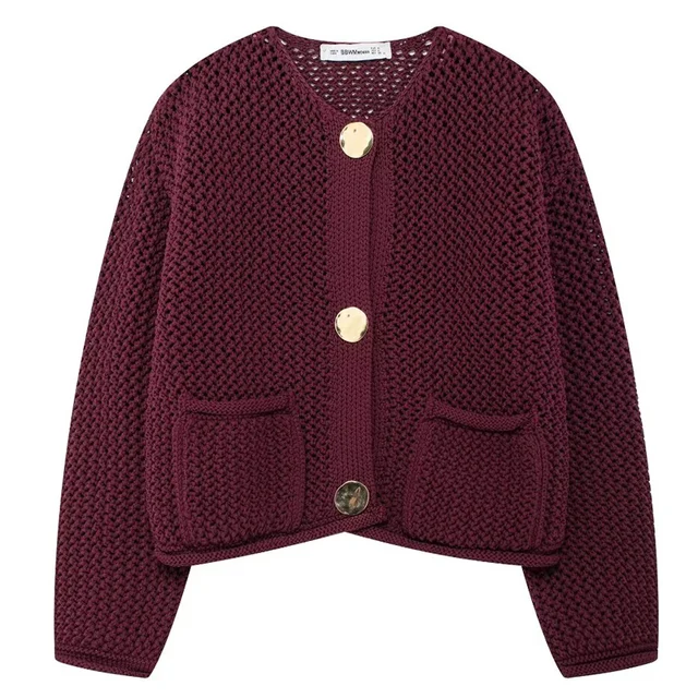HXAO Women’s Sweater Crochet Oversize Cardigan Autumn Crop Knit Button O-Neck Knitwear Loose Long