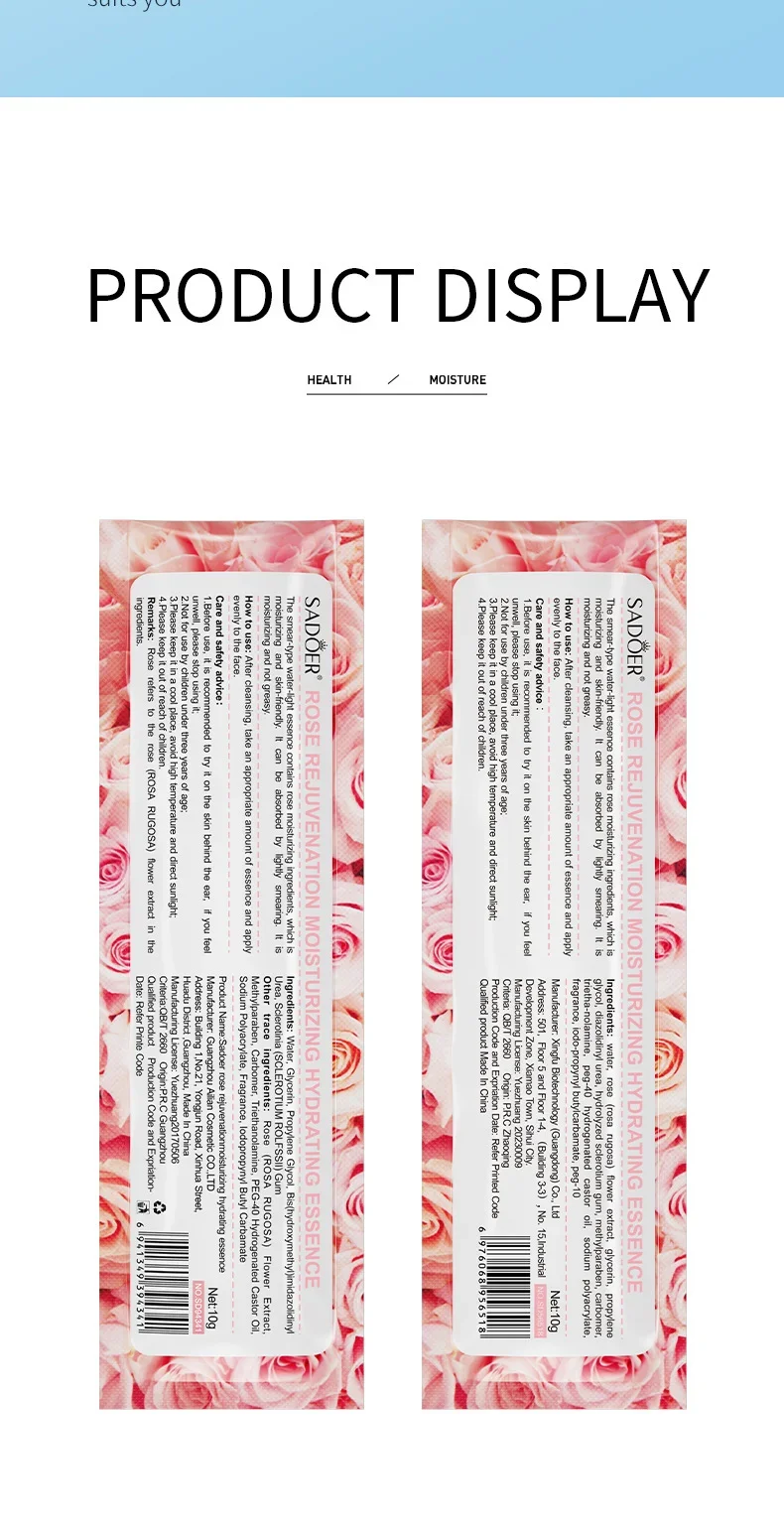 | Product specifications | Hyaluronic Acid Aqua essence |