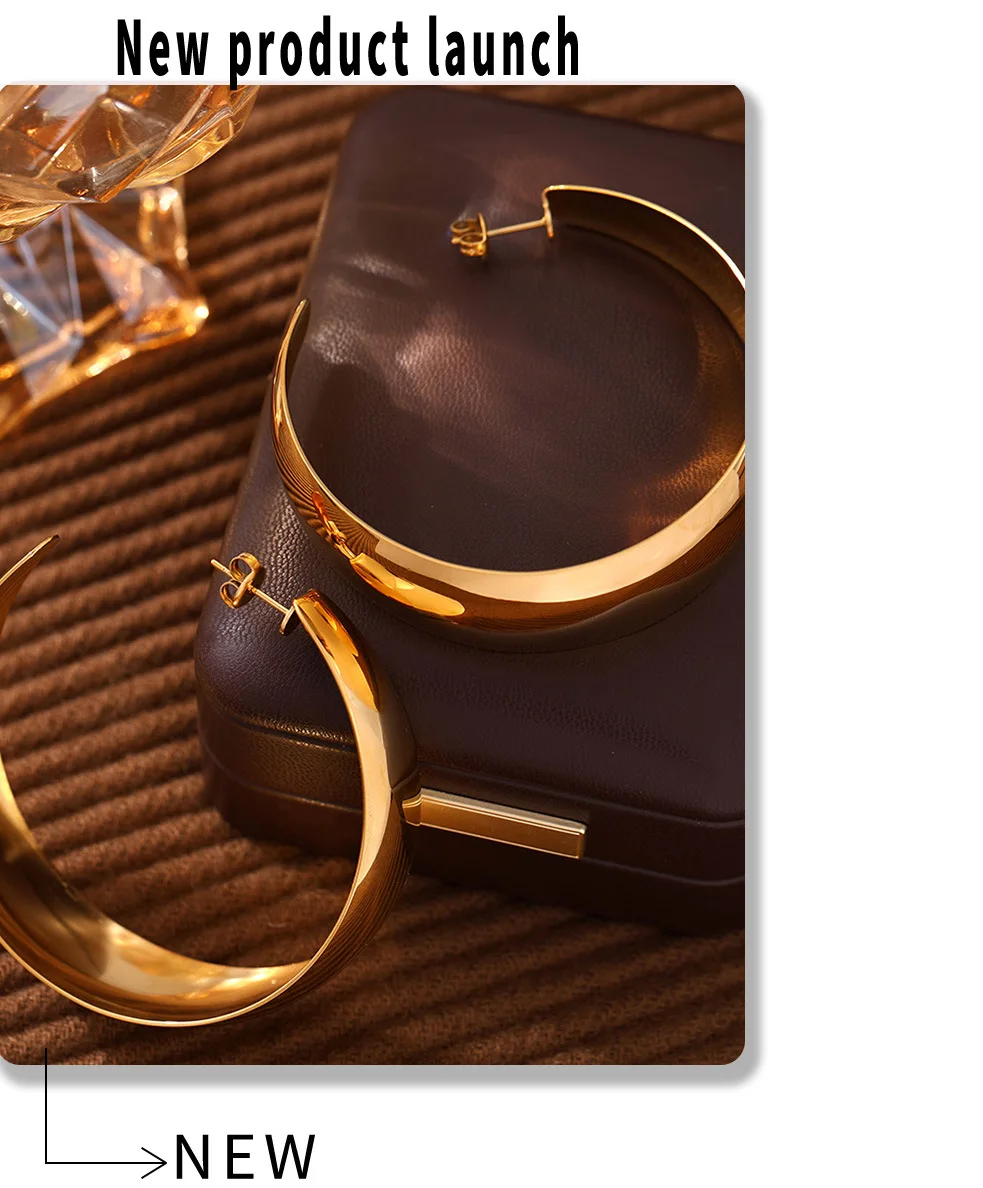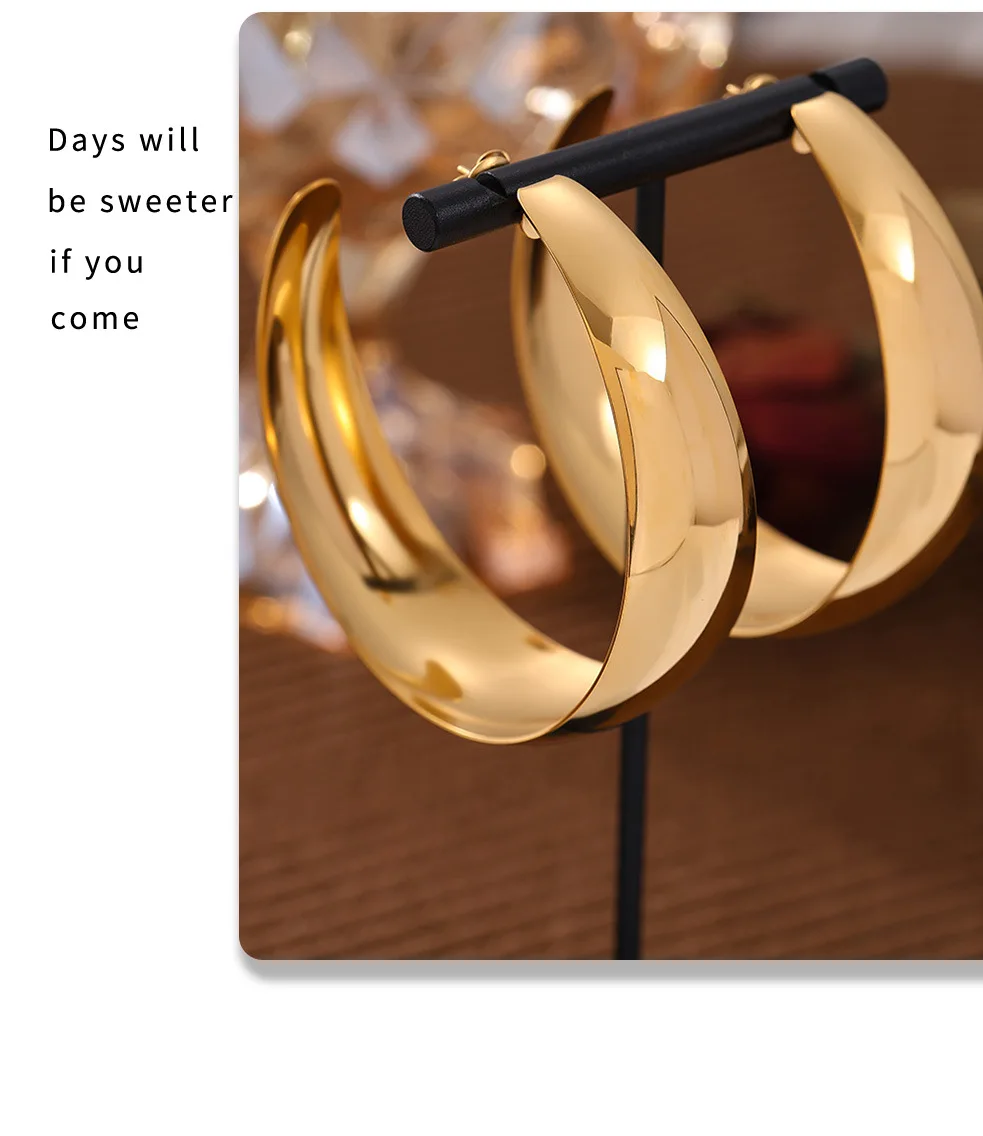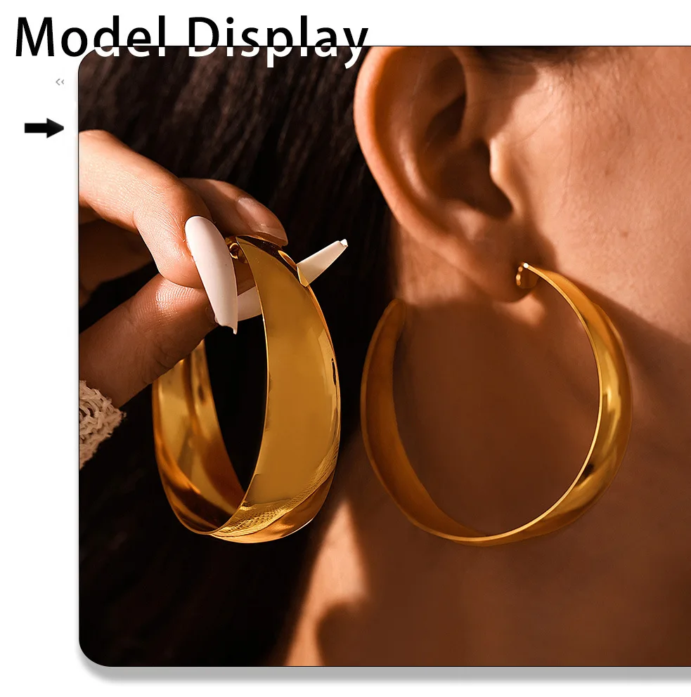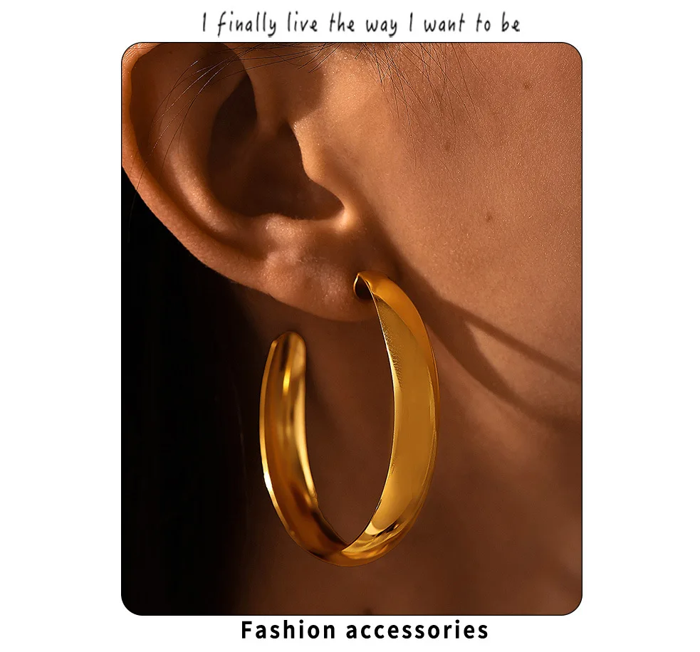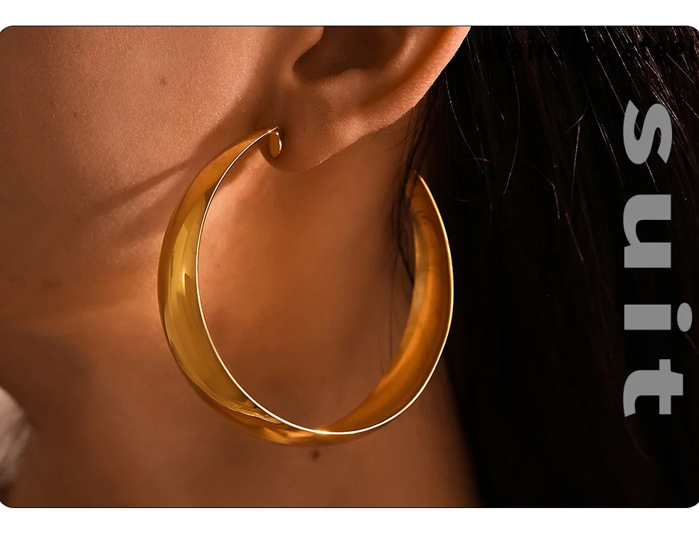 Hyperbole Large Hoop Earrings For Women Stainless Steel 18k Gold Plated Glossy Surface Women’s