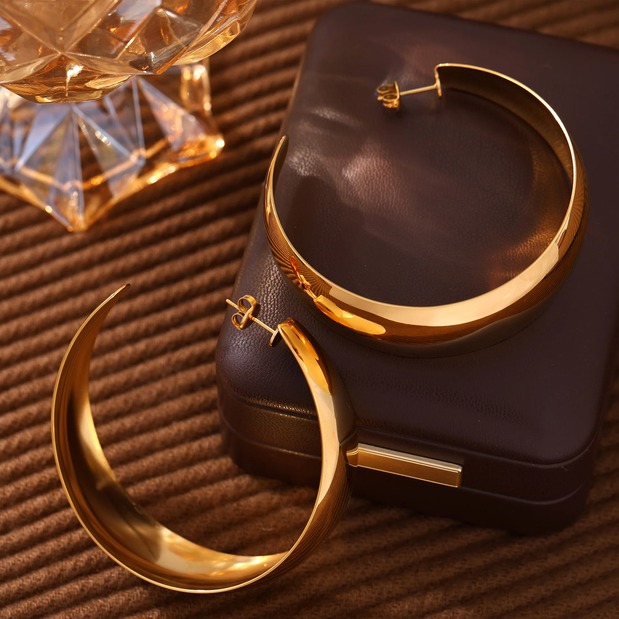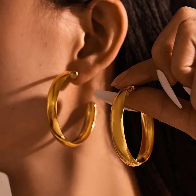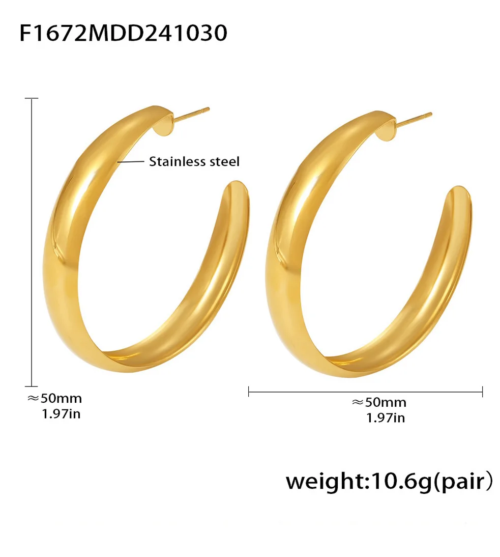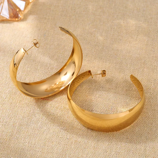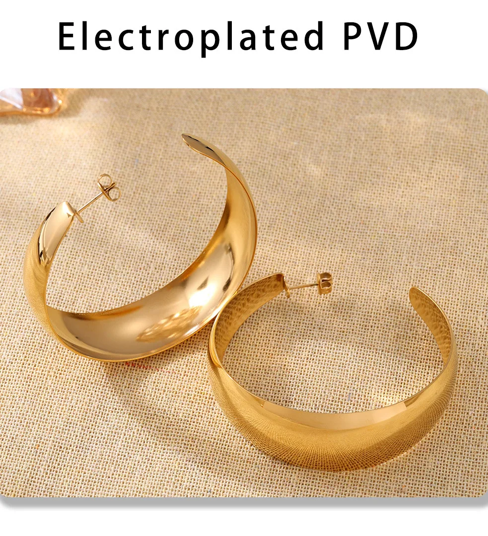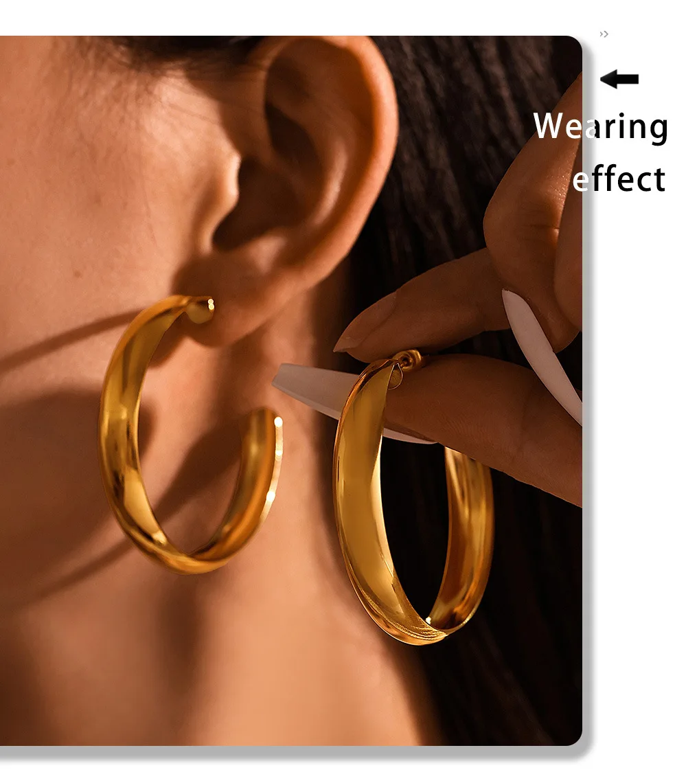 Hyperbole Large Hoop Earrings For Women Stainless Steel 18k Gold Plated Glossy Surface Women’s