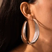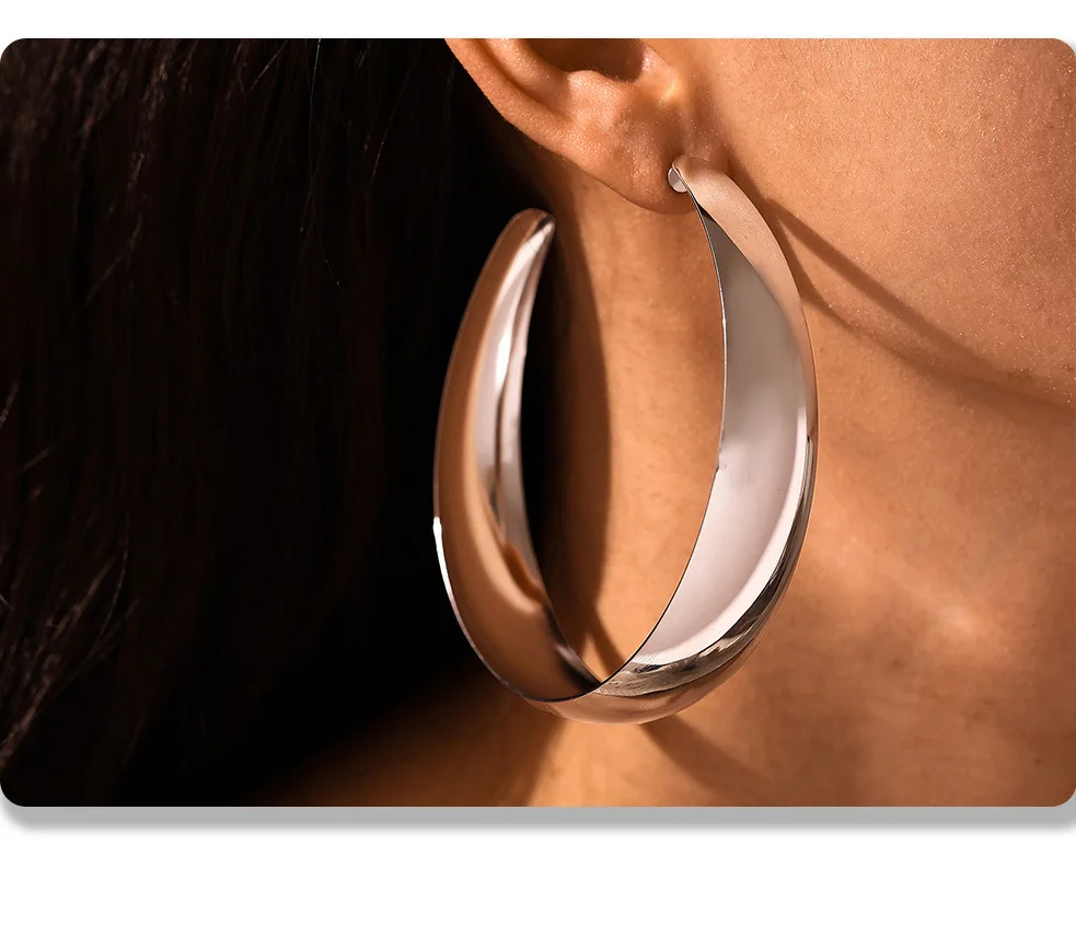 Hyperbole Large Hoop Earrings For Women Stainless Steel 18k Gold Plated Glossy Surface Women's Big Earring Simple Female Hoops