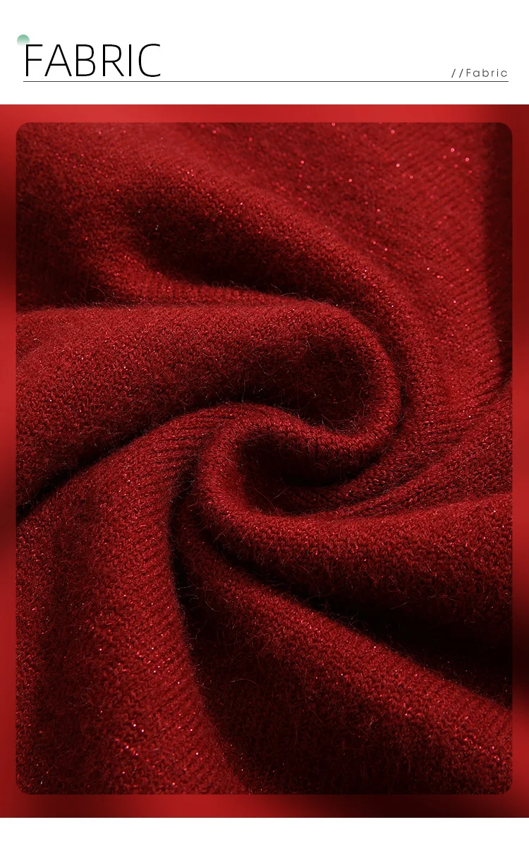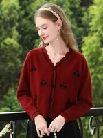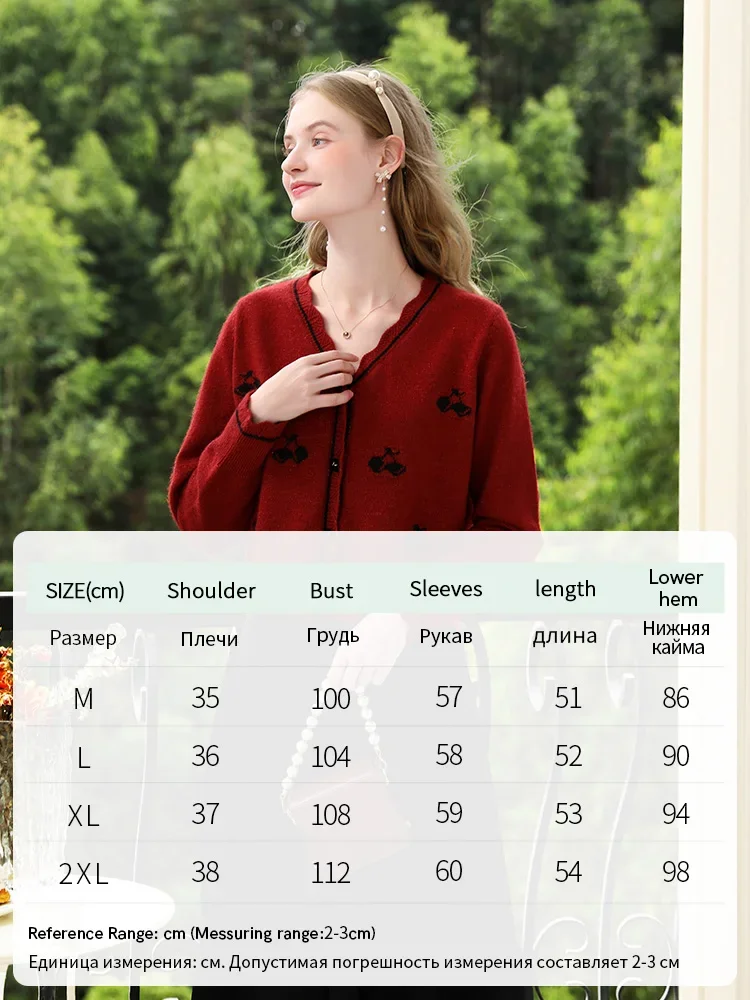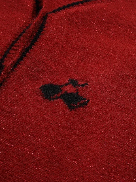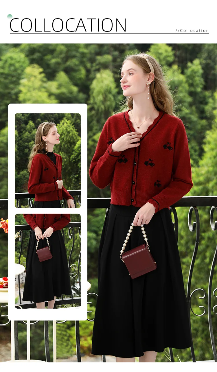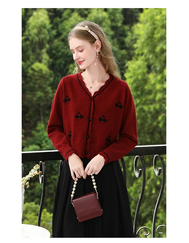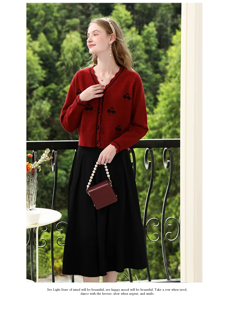I BELIEVE YOU Red Casual Sweater Knitted Coats for Woman V-neck Office Lady Short Cardigan Fall Clothes