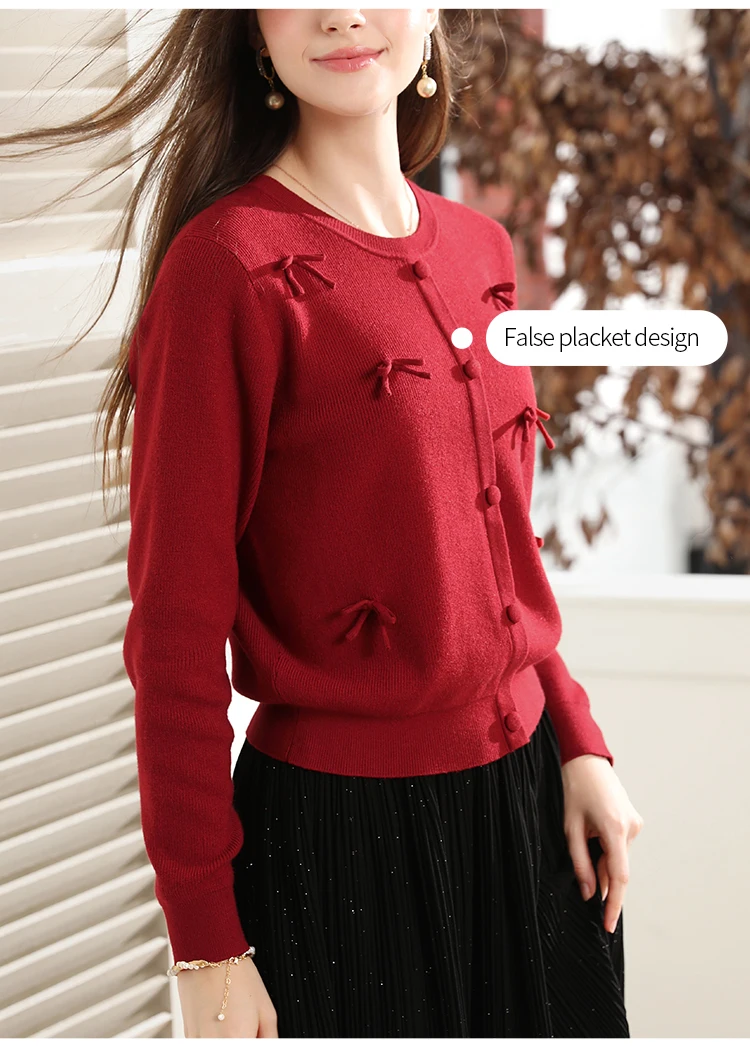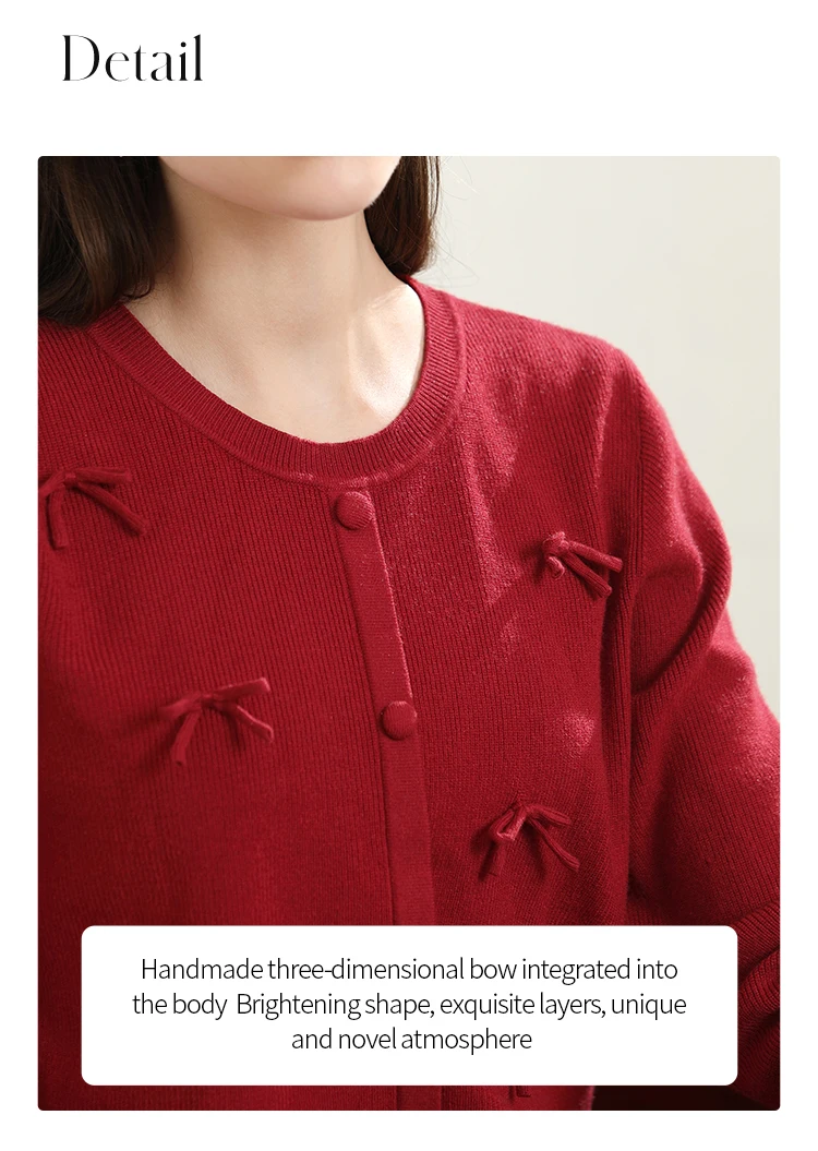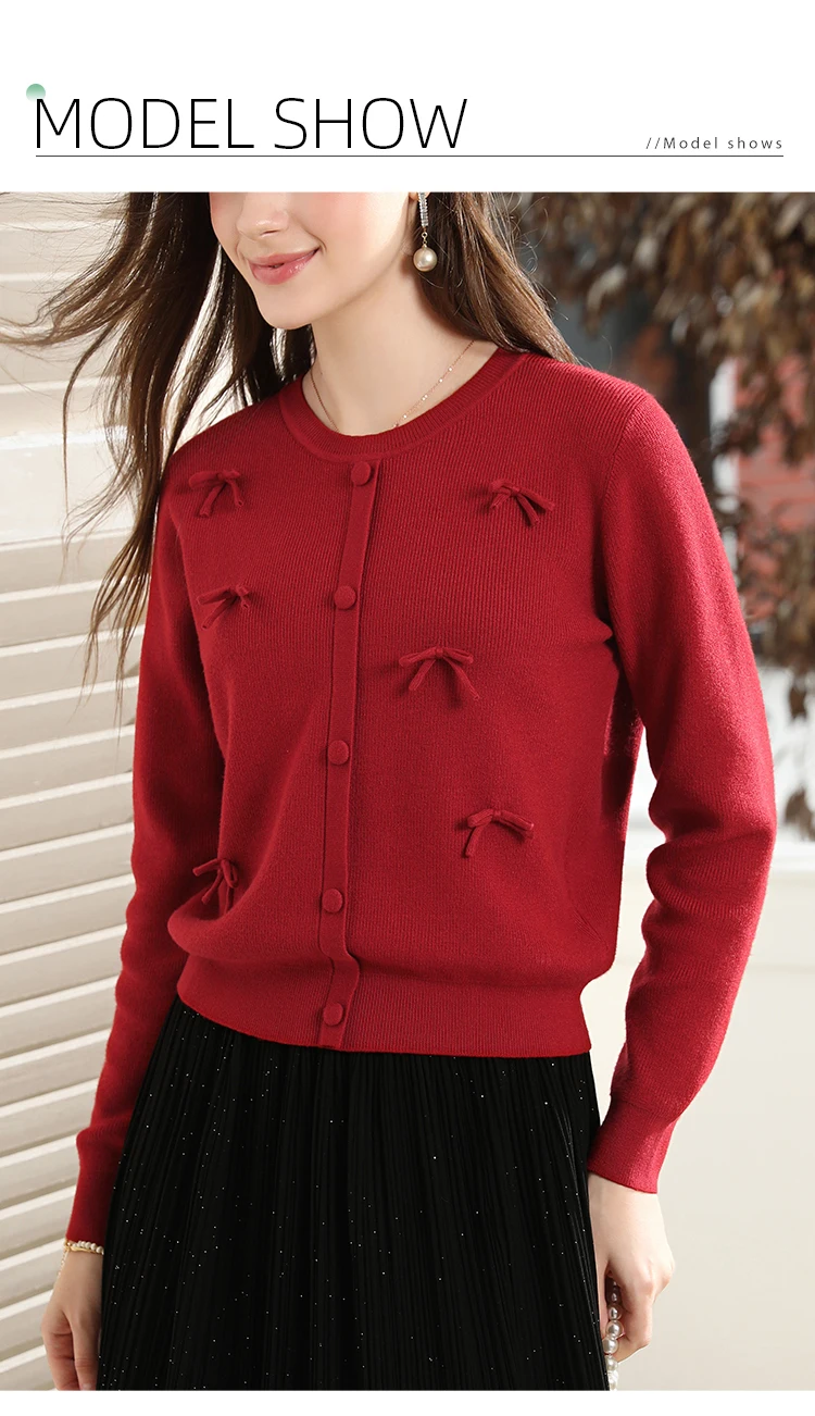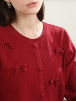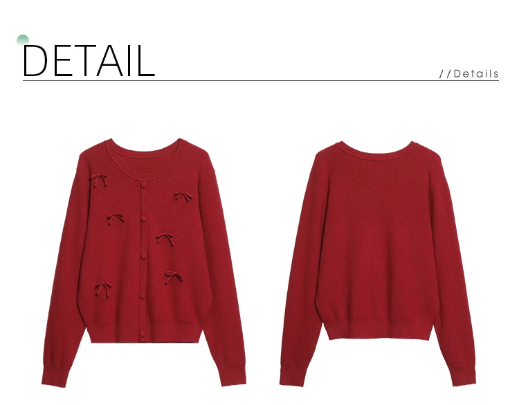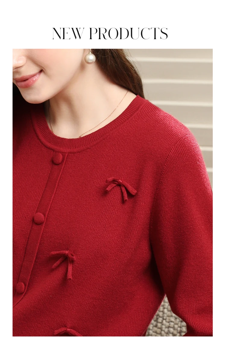 I BELIEVE YOU Woman Sweaters 2025 Sutumn Red French 3D Bow Knit Pullovers Casual O-neck Long Sleeves