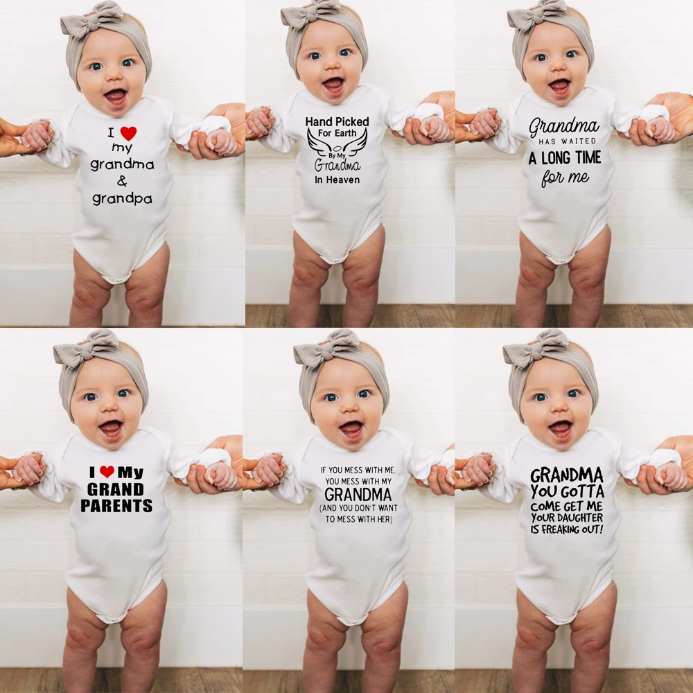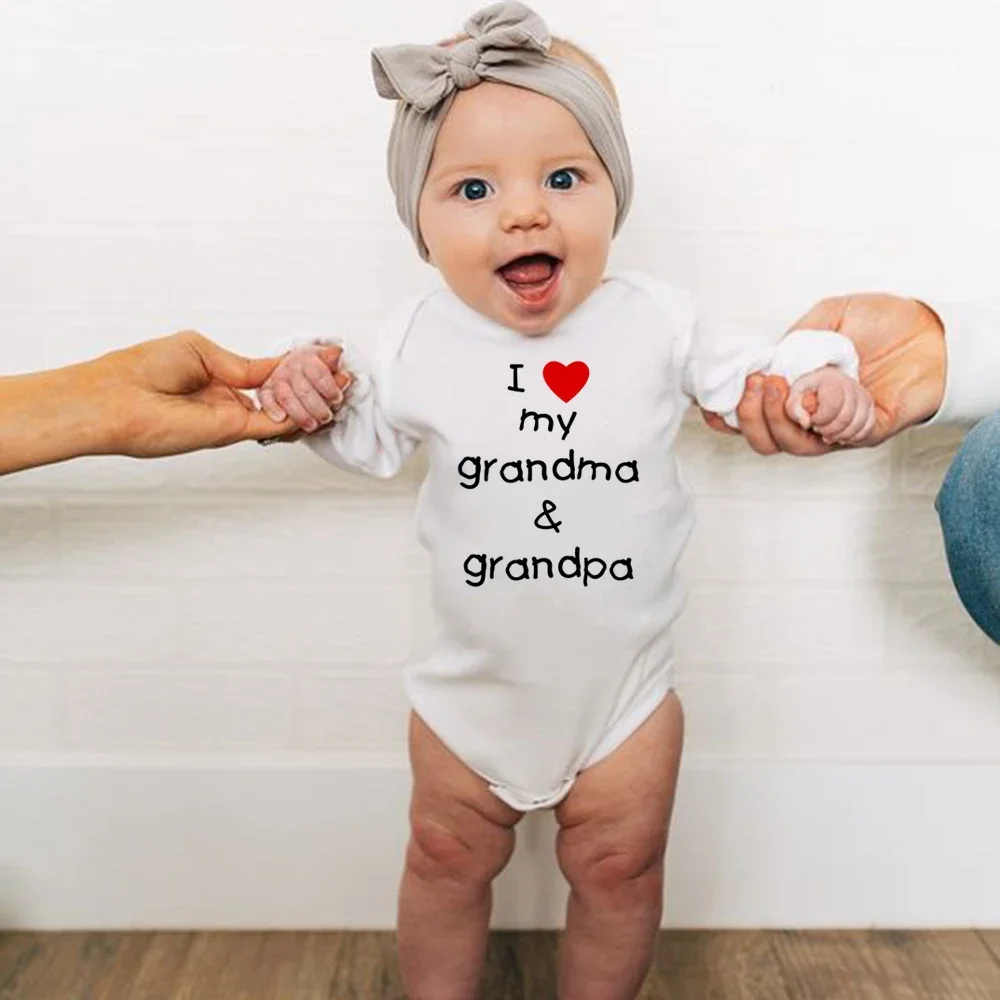 I Love My Grandma and Grandpa Baby Bodysuit Cute Newborn Baby Rompers Autumn Long Sleeve Bodysuits Baby