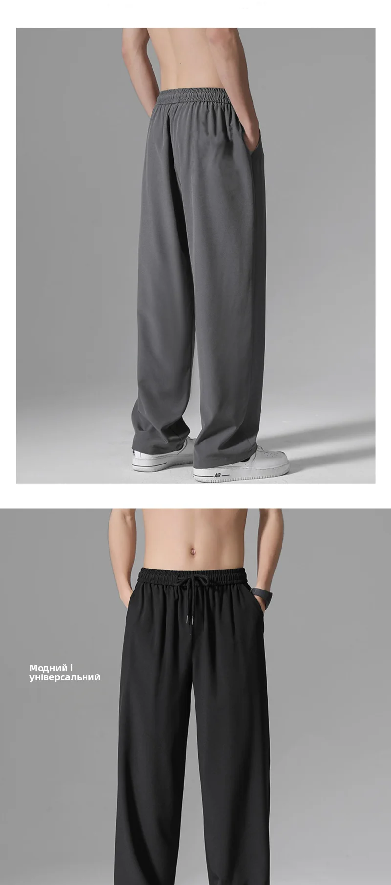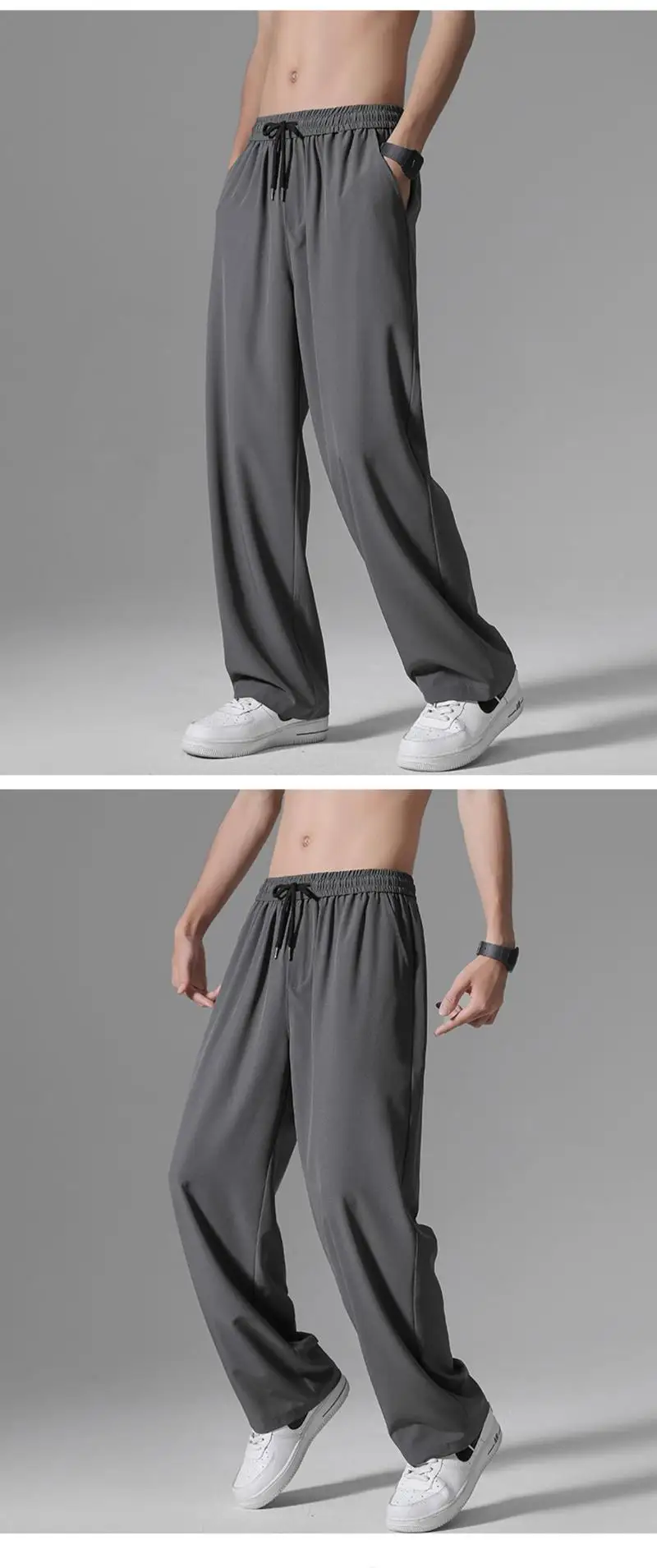 Featuring a trendy straight-leg cut and sleek ice silk material, these pants are perfect for the fashion-forward male.