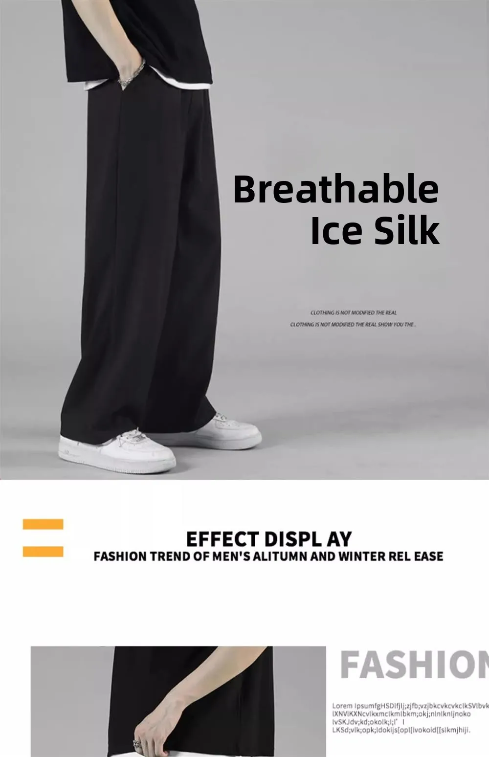 Ice Silk Qui Dry Thin Casual Pants Men's Summer Straight Leg Drapey Long Trousers Spor Lightweight Comfortable orts
