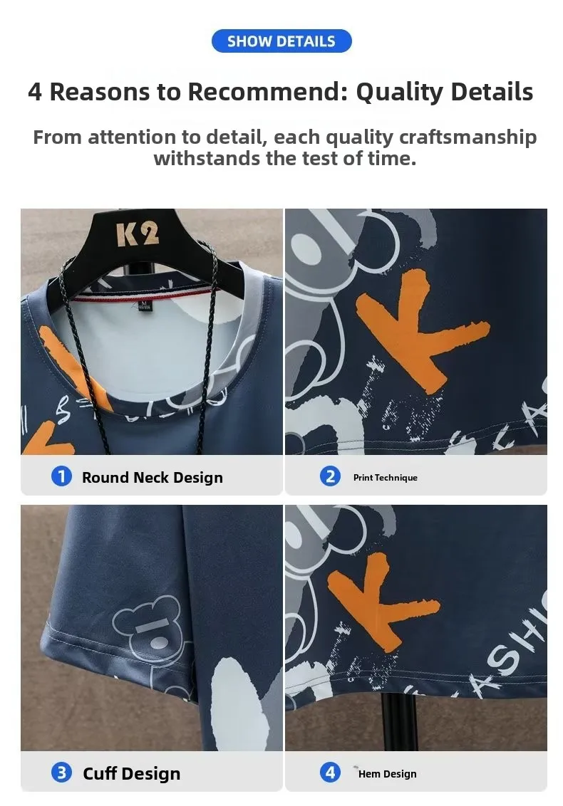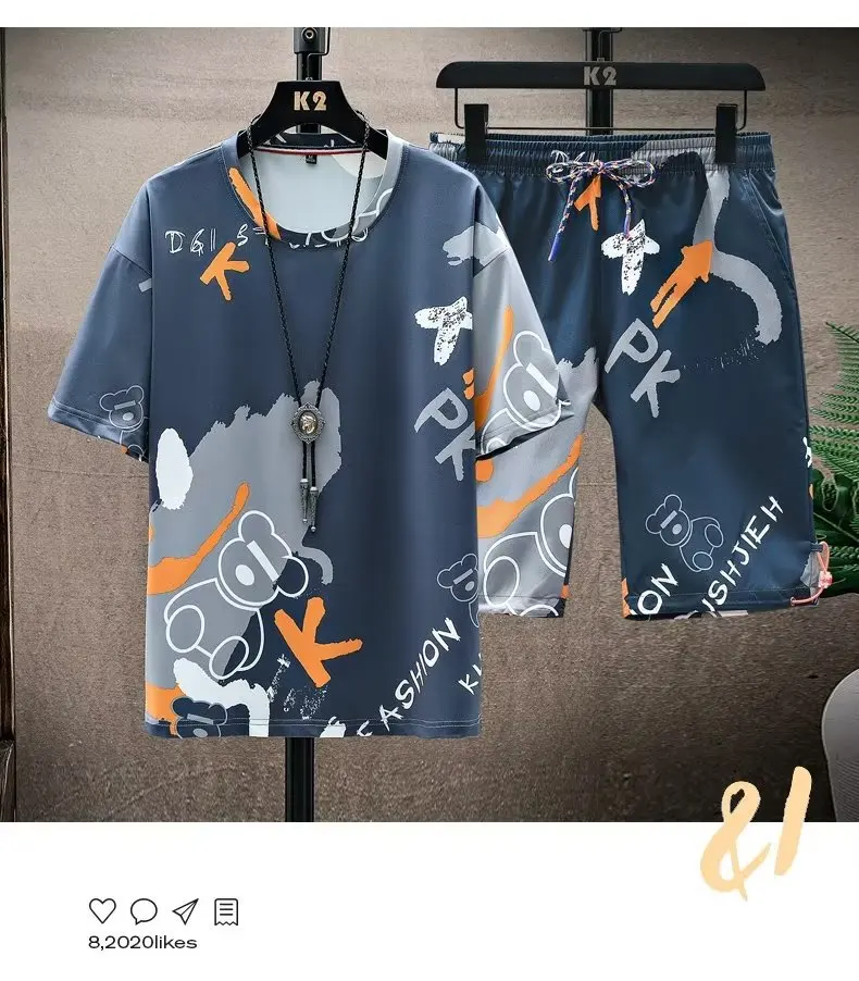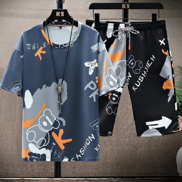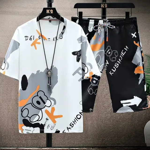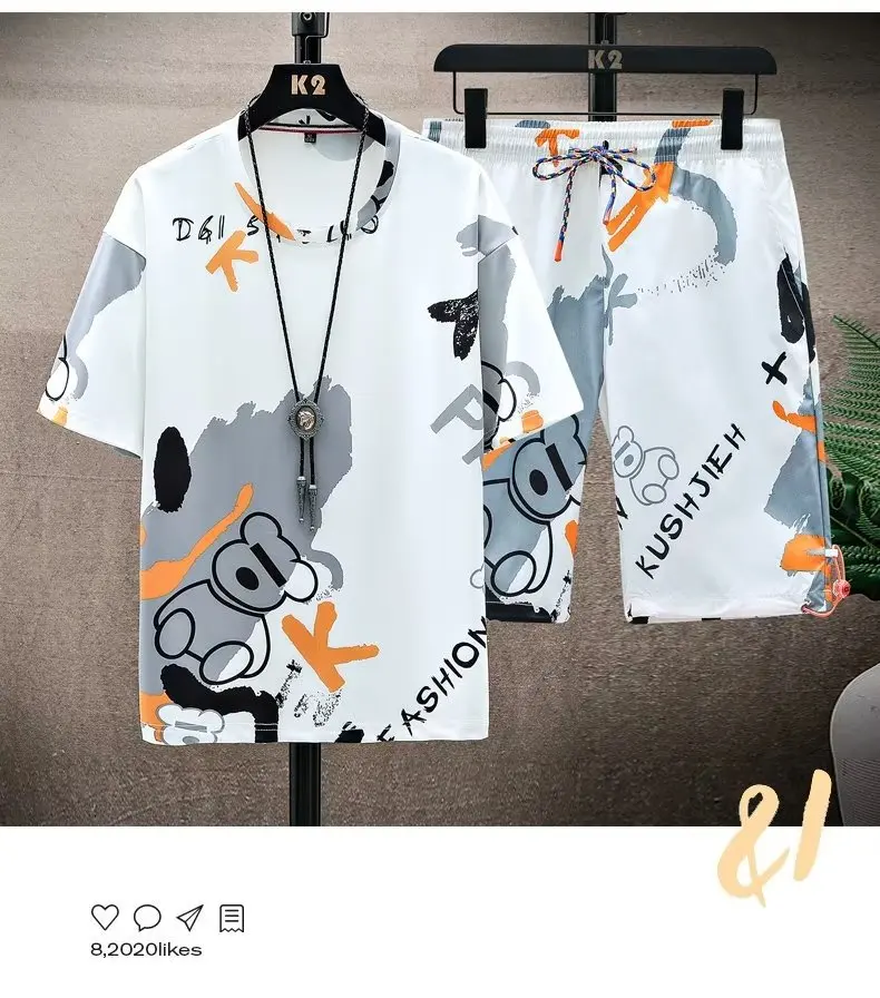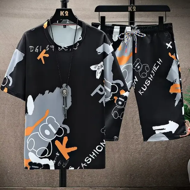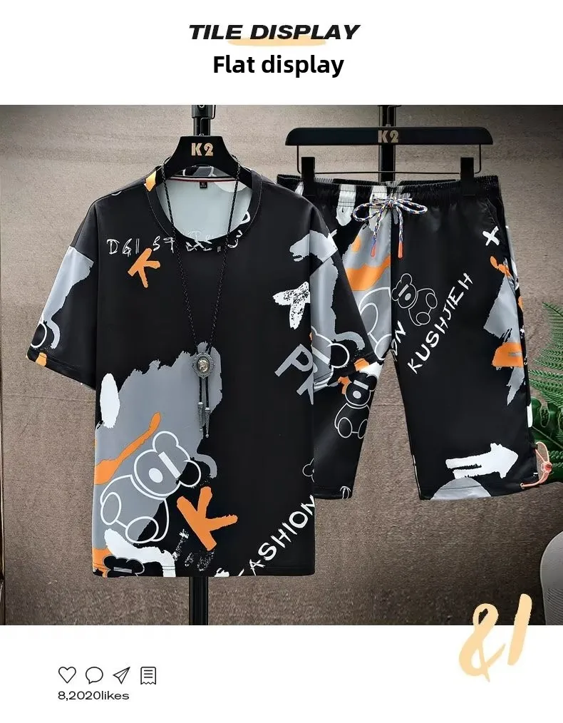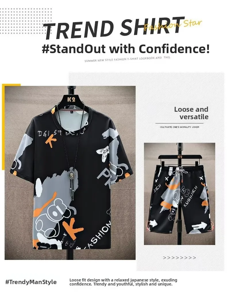 This men’s short sleeve set features a trendy Korean style, perfect for those who want to stay ahead in fashion.