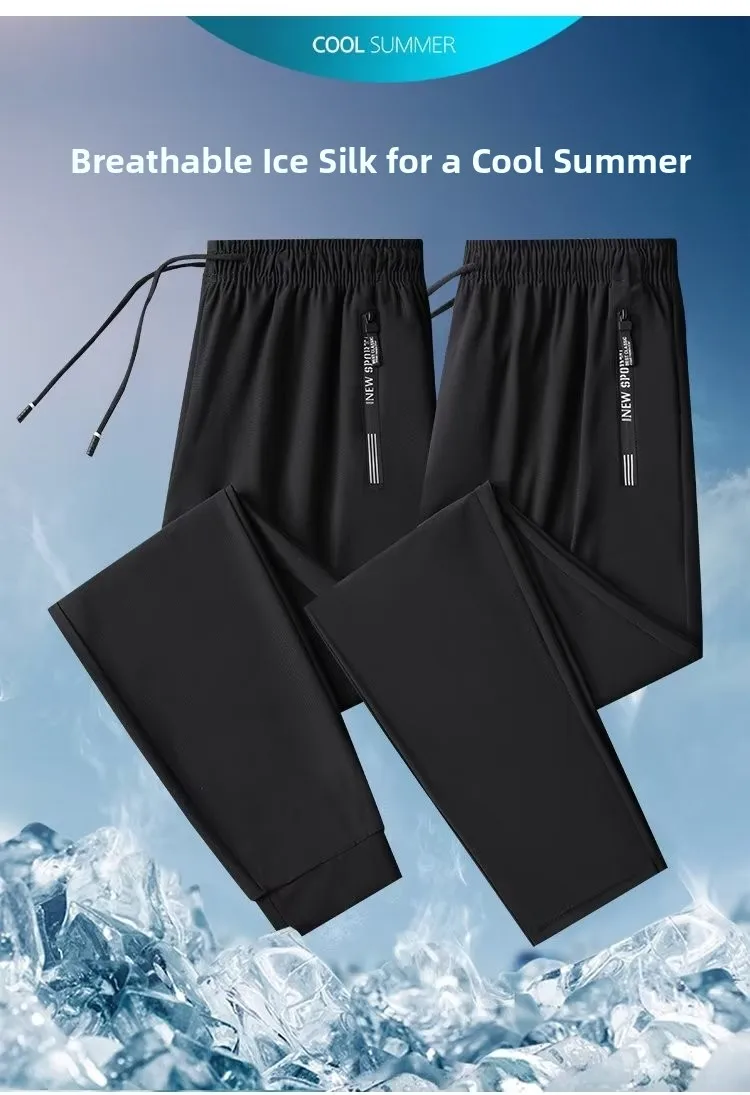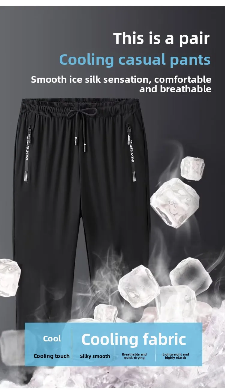 Crafted from thin ice silk material, these pants provide a cool and comfortable feel during the summer months.