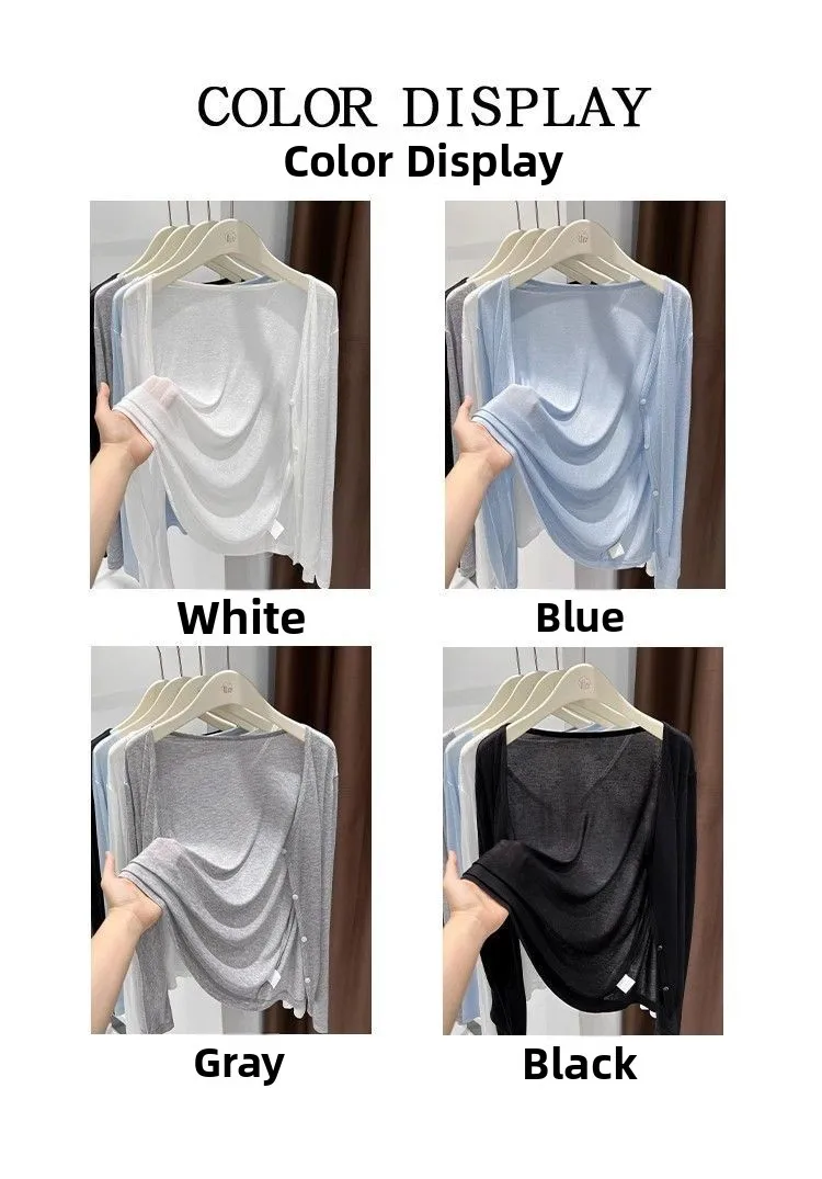 This ice silk thin sunscreen can be worn as a shawl, making it a versatile piece that can be paired with different outfits.