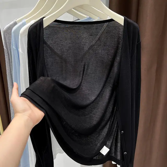 With long sleeves and a V-neck design, this cardigan provides both style and functionality, suitable for the summer season.