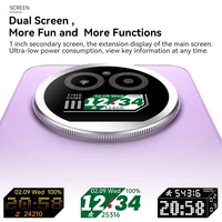 It acts as a key information dashboard, showing battery, clock, calendar and pedometer. You can raise your hand to turn on the secondary screen.