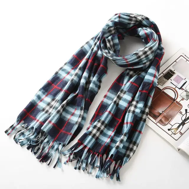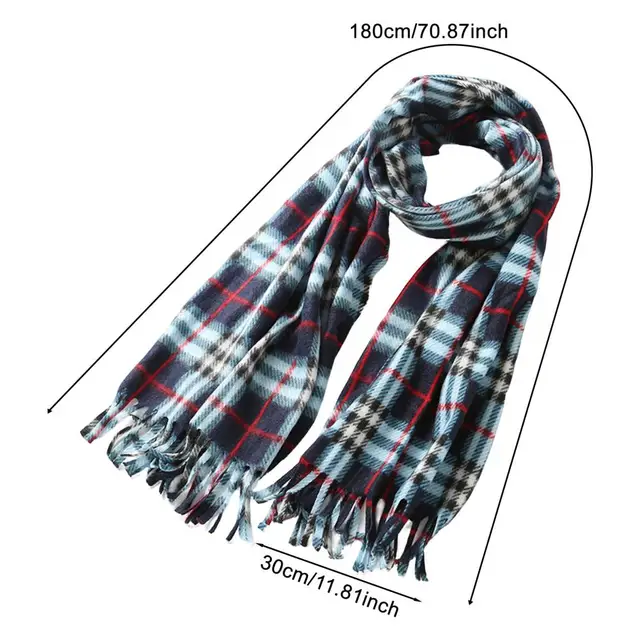 Material: Crafted from premium polyester fiber, this plush scarf is exceptionally soft and cozy, ensuring maximum comfort during chilly days. The classic plaid pattern adds a touch of timeless elegance to any outfit.