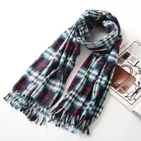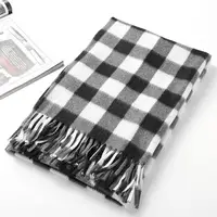 Women Winter Scarf Plaid Print Lightweight Soft Warm Scarf with Tassel Trim Cold Weather Imitation Cashmere Scarf
