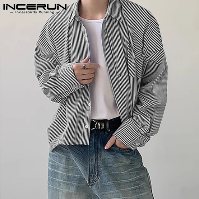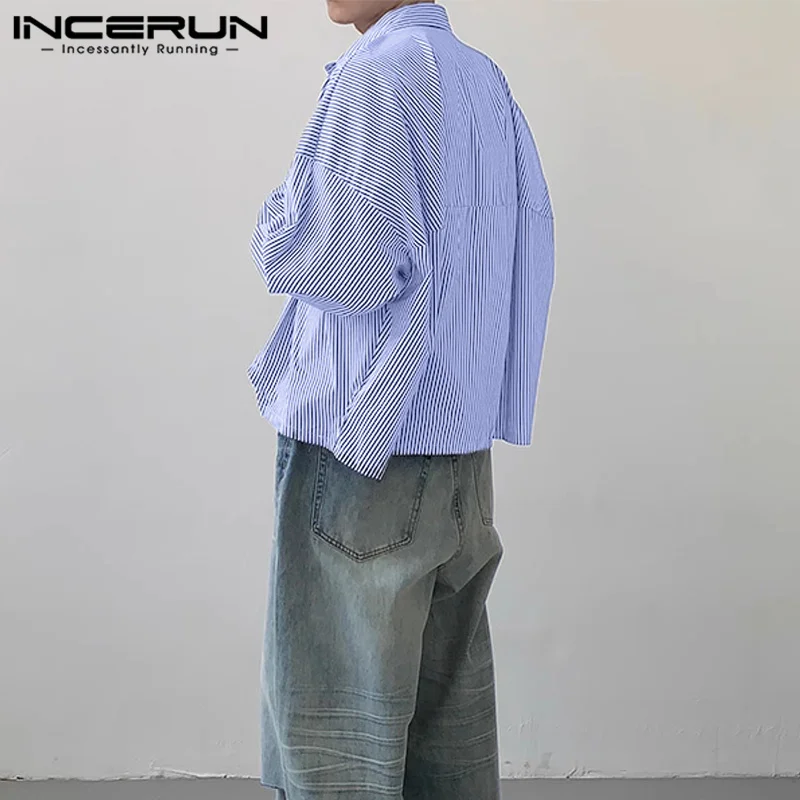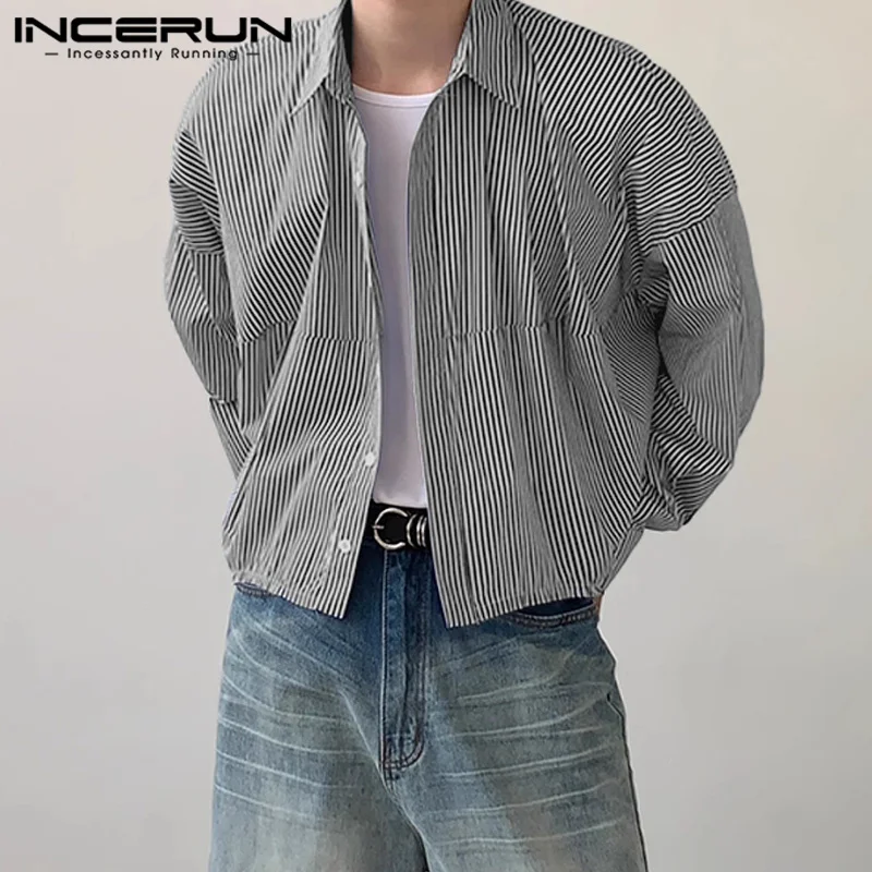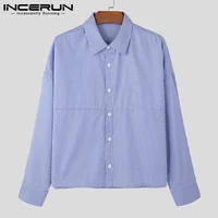 INCERUN Men Shirt Solid Color Lace Up Long Sleeve Loose Casual Men Clothing Streetwear 2024 Fashion Leisure Male Shirts S-5XL