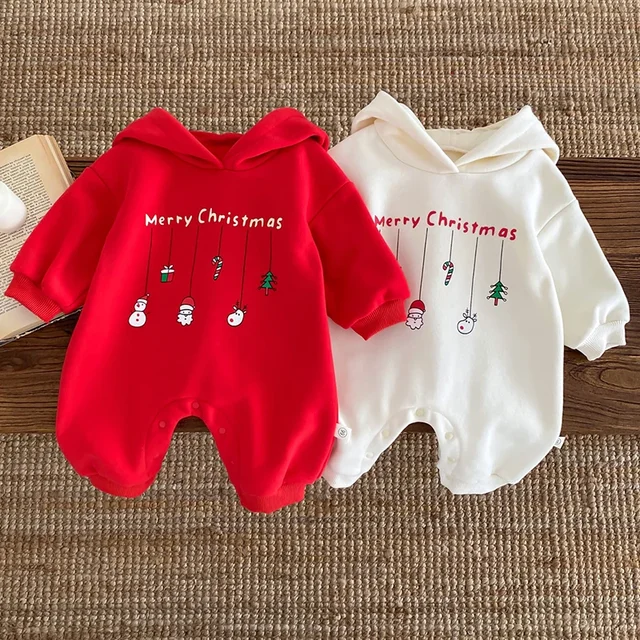 Infant Baby Boys Girls Christmas Romper Long Sleeve Thicken Hooded
