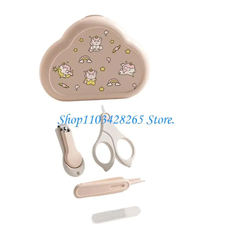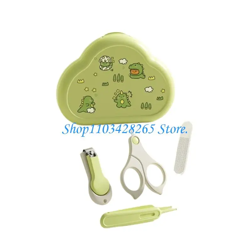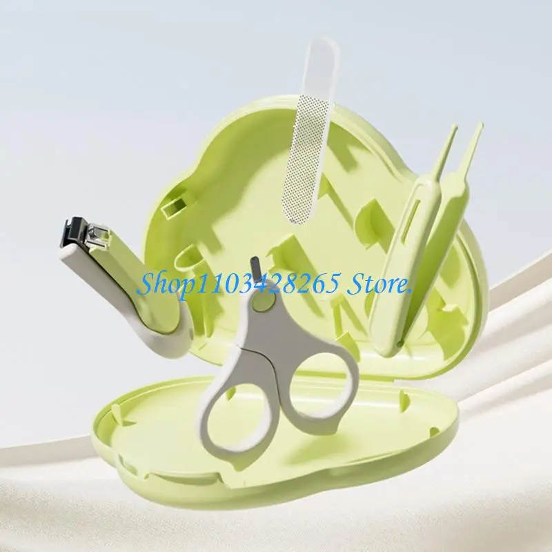 Set of baby nails trimming tool, including nails trimmer, nails scissors, tweezer, and nails file with storage box.