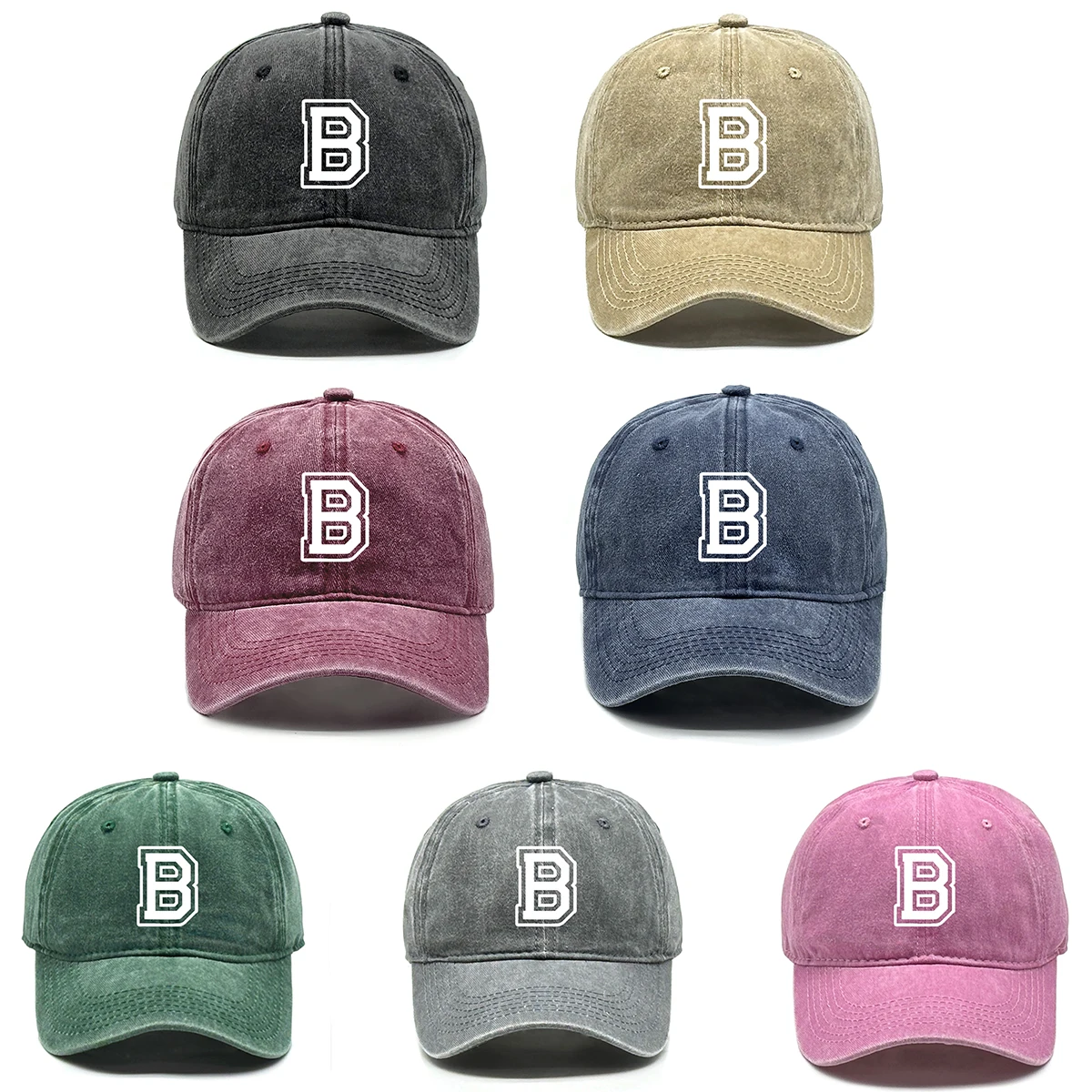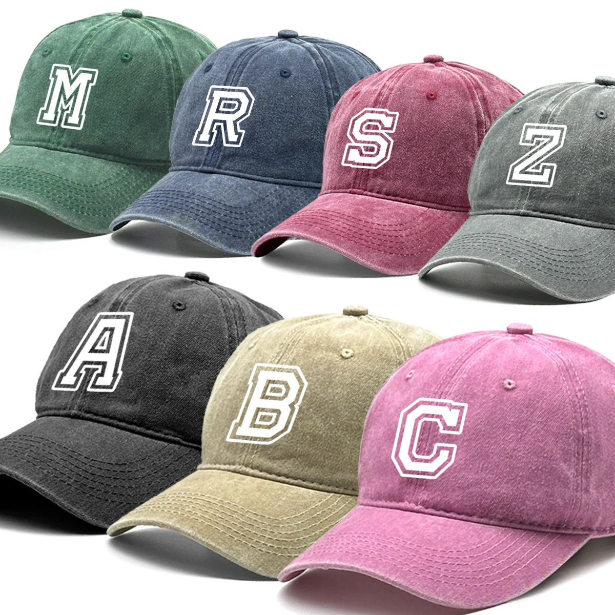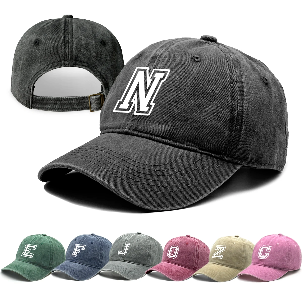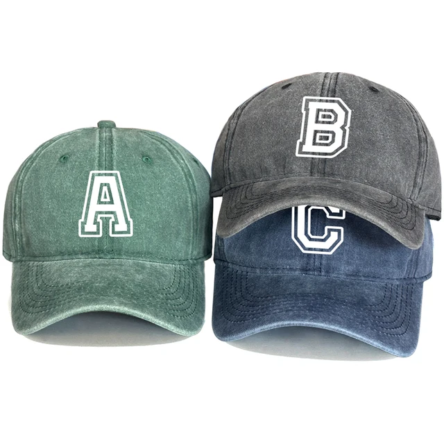Initial Letter A-Z Print Baseball Cap For Men Women Retro Washed Cotton Dad Hat Team Sport Visors Snapback