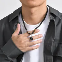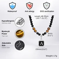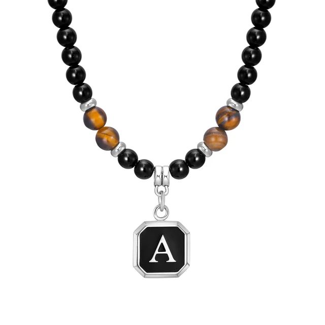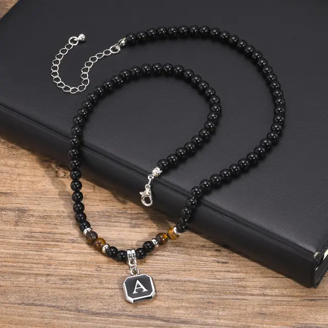Initials Beaded Necklaces for Men Boys,Tiger Eye Alphabet A-Z 26 Letters Pendant Necklace,Stylish Jewelry