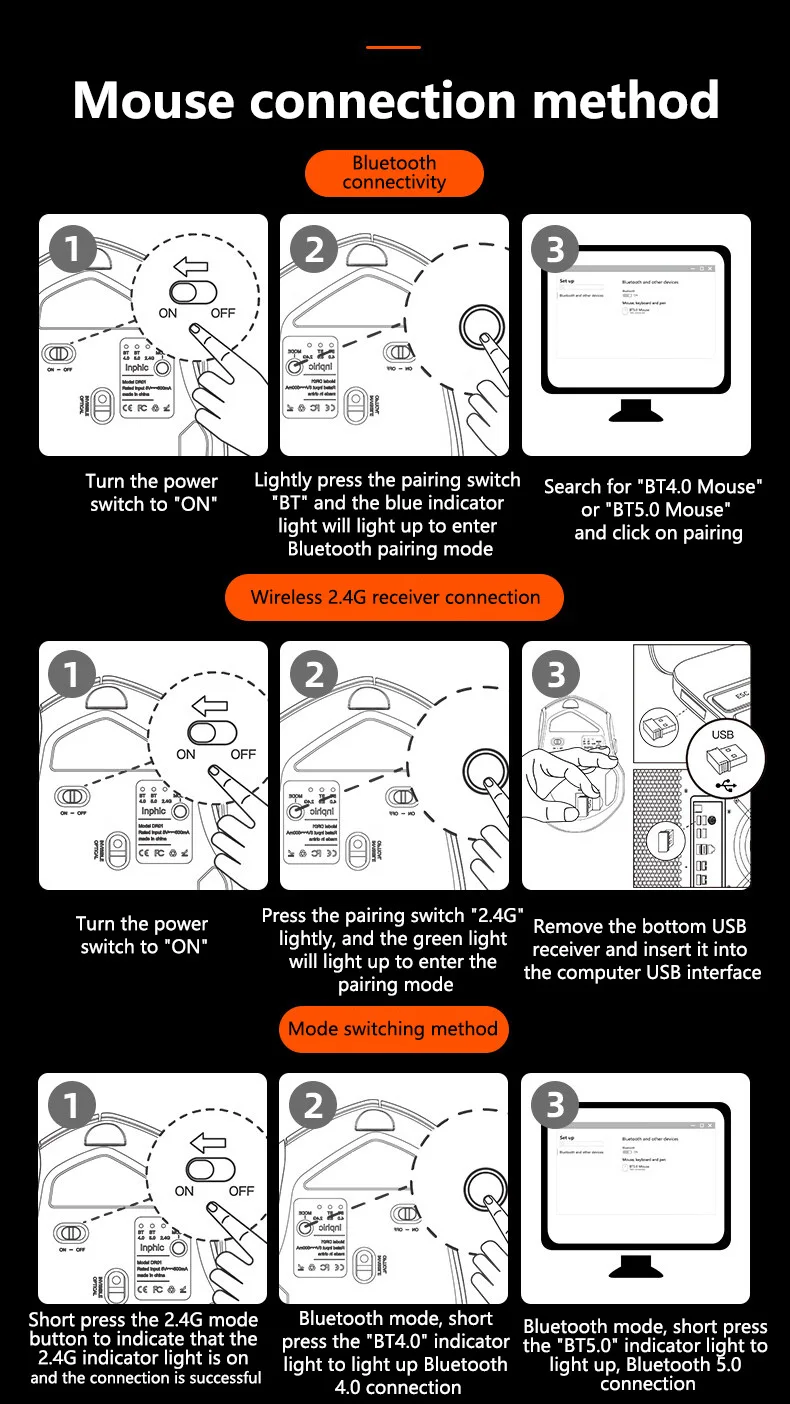 Supports Bluetooth 5.0+Bluetooth 4.0+wireless 2.4G connection