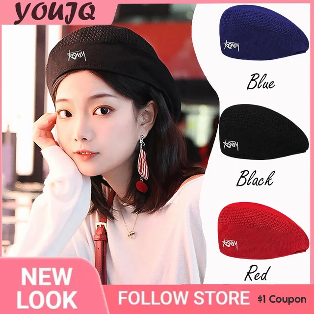 INS Beret Hat Summer Hand Knitted Thin Breathable Mesh Beret Caps for Women Men Autumn Winter Wool Berets Beanie Hat Navy Caps