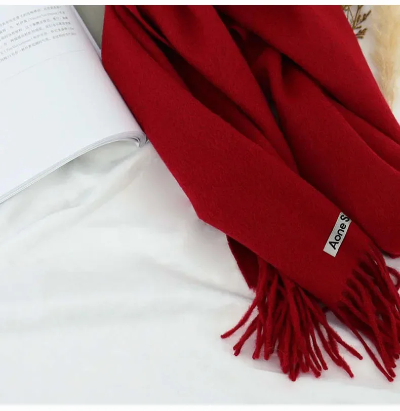 Ins Luxury Brand 100% Wool Scarf for Women Men Solid Color Plain Real Wool Scarves Female Winter Fashion Warm Cashmere Shawl