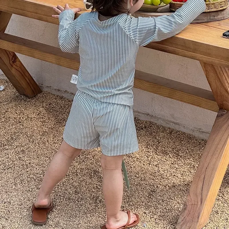 2025 Autumn Korean Baby Clothing Set New Girl's Tracksuit Suit Kids Long Sleeve T-shirts + Short Fashion 2Pcs Lace Bow Clothes