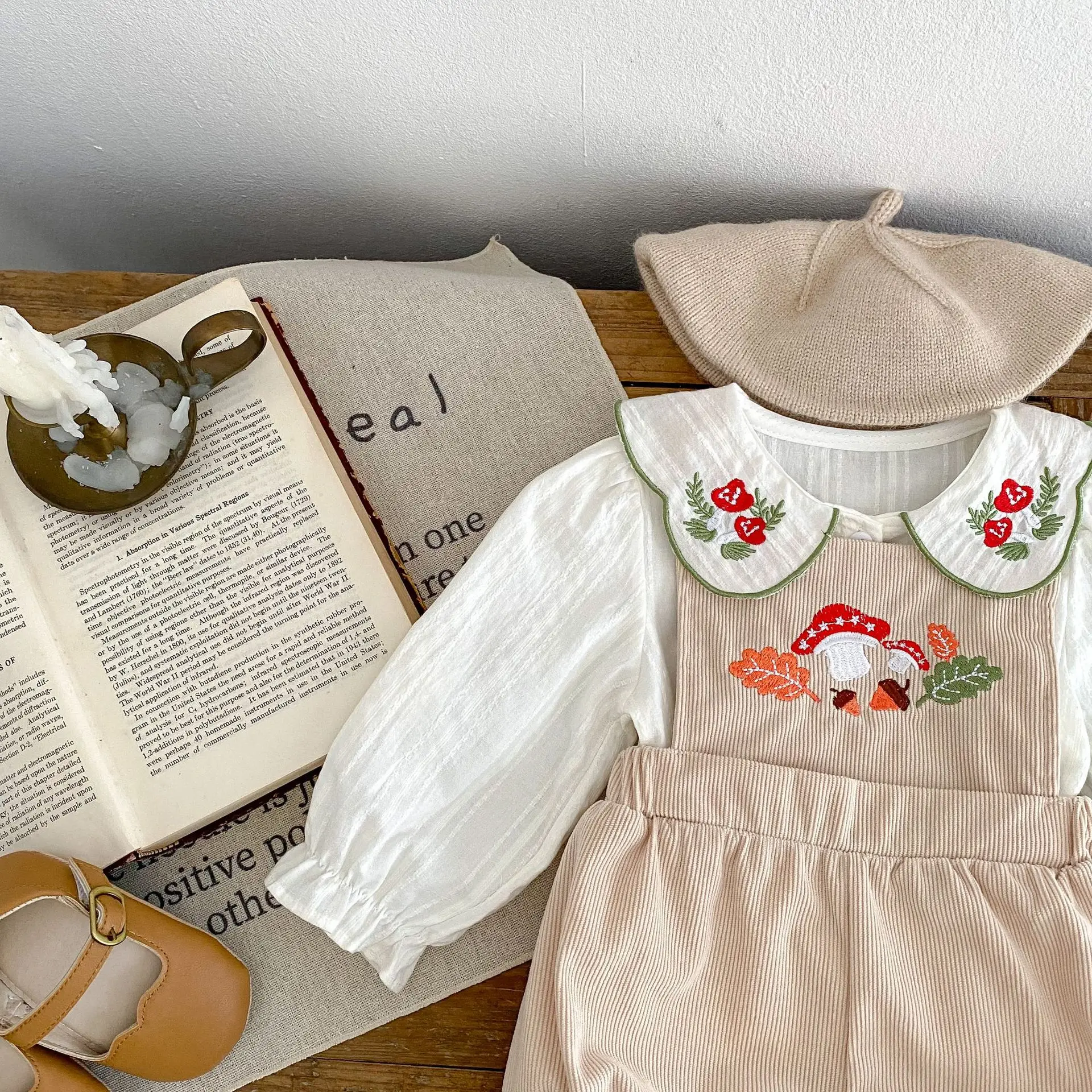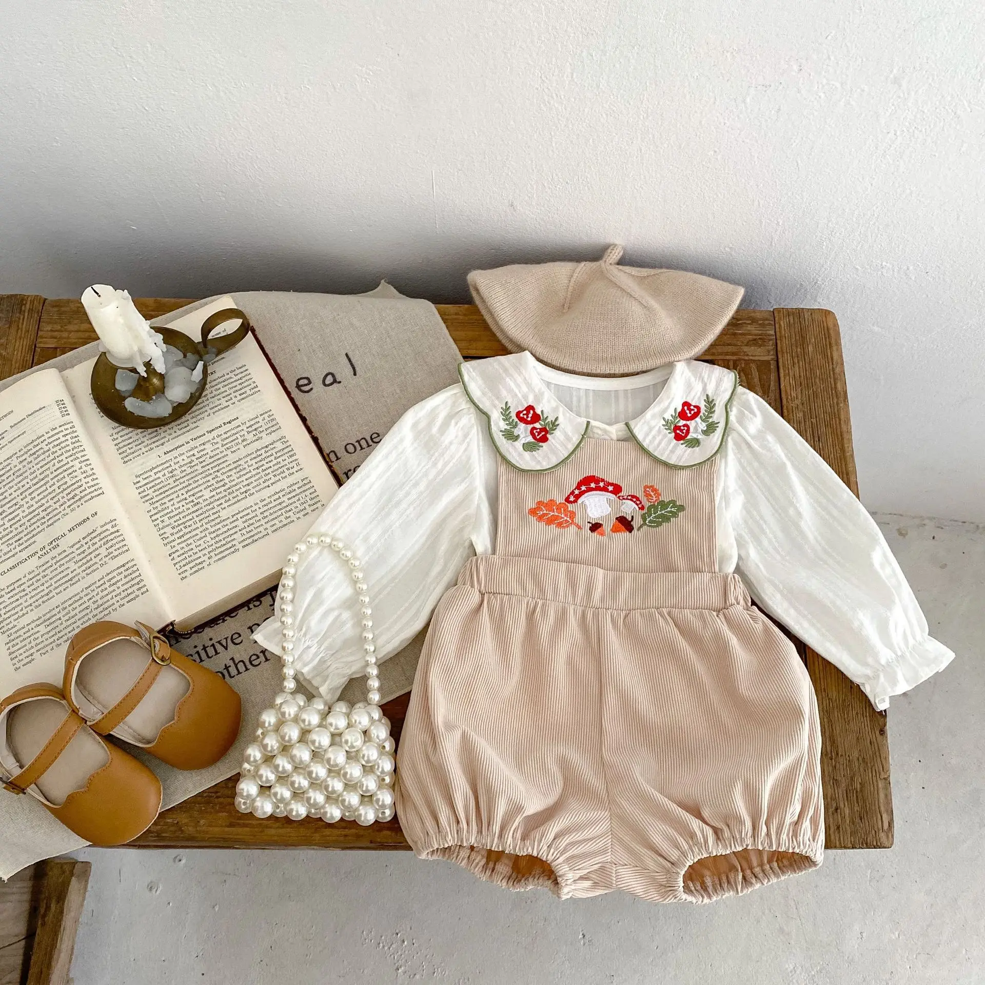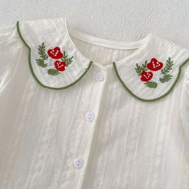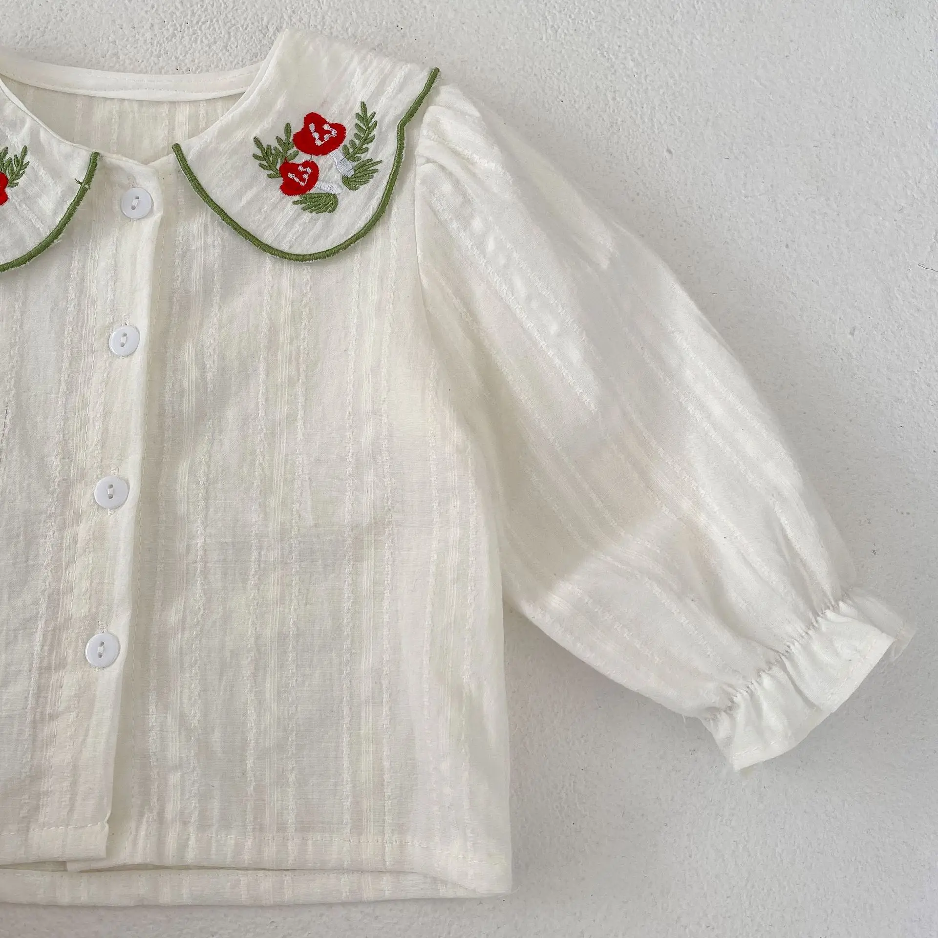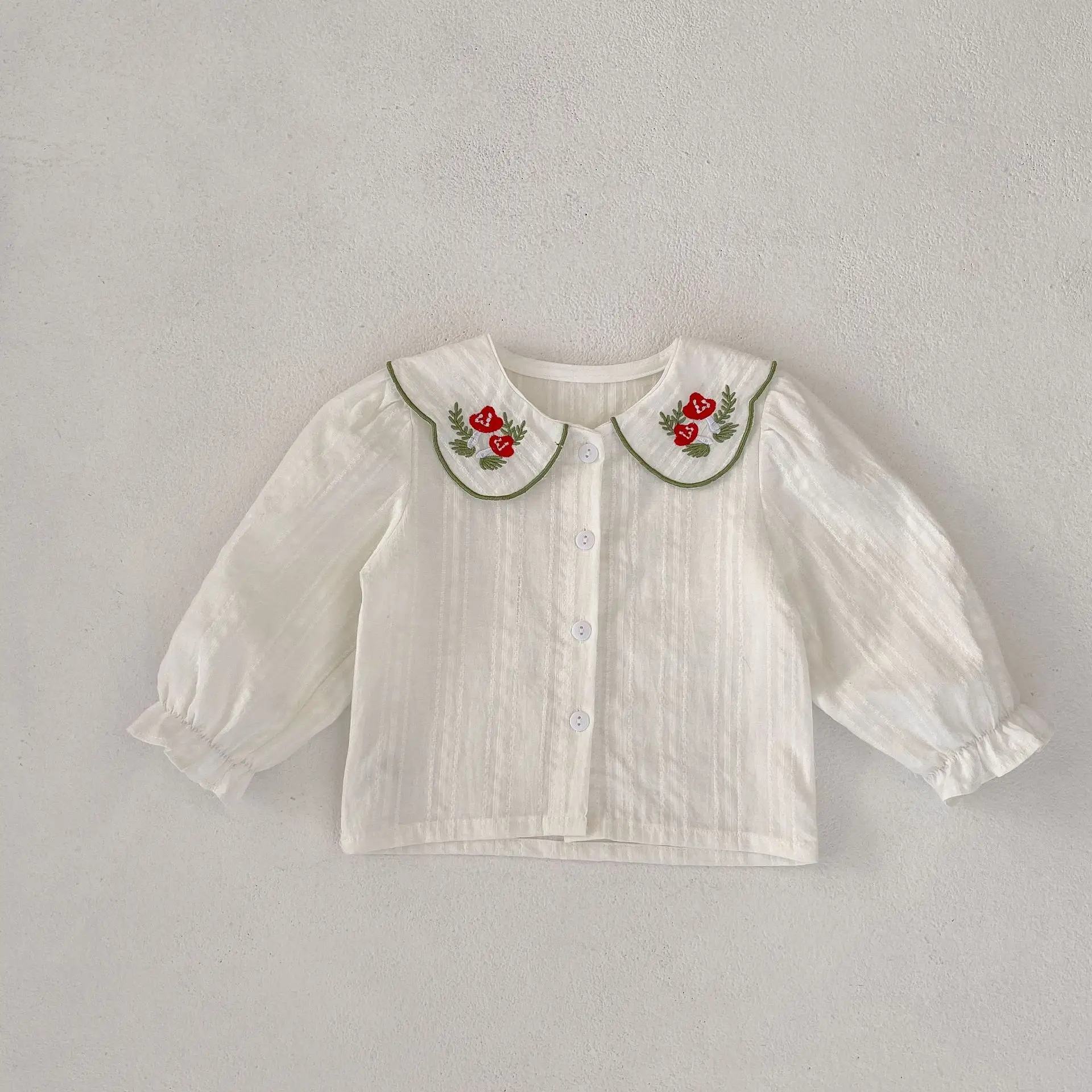 Instagram Spring/Summer New Single Item Set for Infants and Girls Baby Embroidered Polo Collar Cardigan