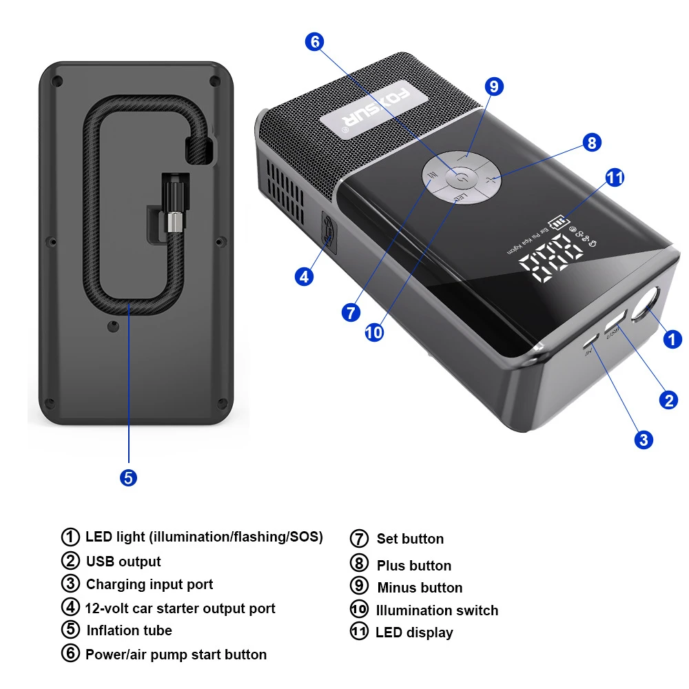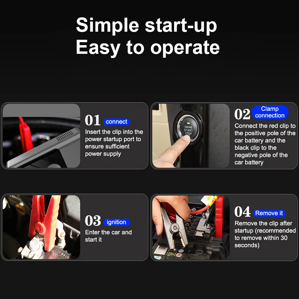 – One-Click Vehicle Start: Quickly jump-start your car even at zero battery voltage, compatible with 12V diesel and petrol vehicles.