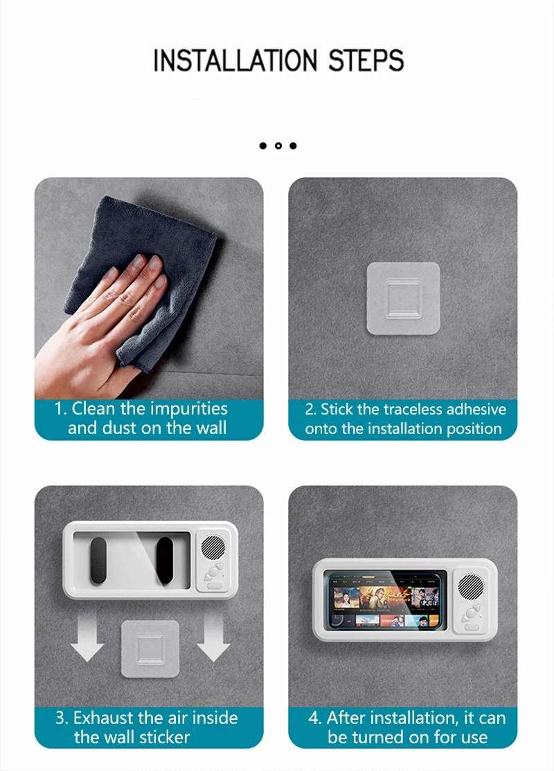 IPX4 Waterproof Phone Case with Bluetooth Speaker Wall Mount Phone Holder Stand Anti-Fog for Showering
