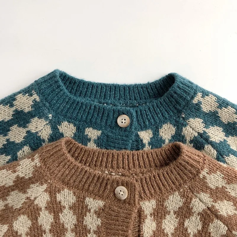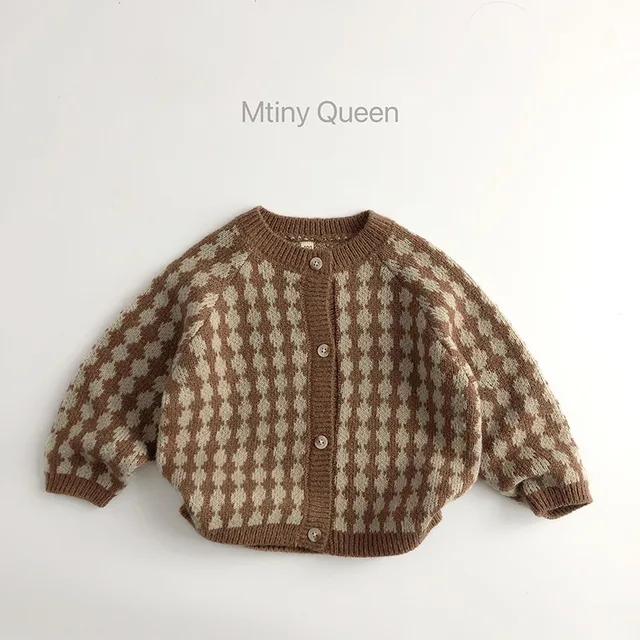 Ircomll Autumn New Grid Knit Jackets Kids Garments Knitted Sweaters Boys Girls Cardigan Unisex Casual