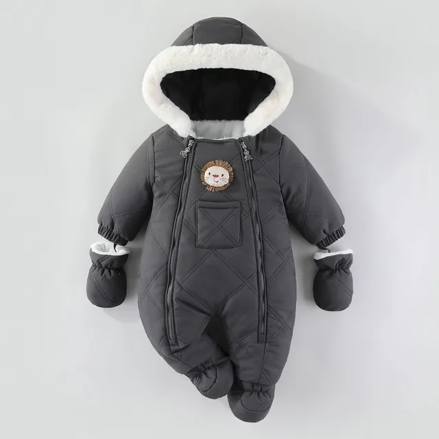 2025 Winter New Baby Warm Hooded Romper Newborn Toddler Plus Velvet Thick Jumpsuit For Boy Girl Infant Fleece Clothes