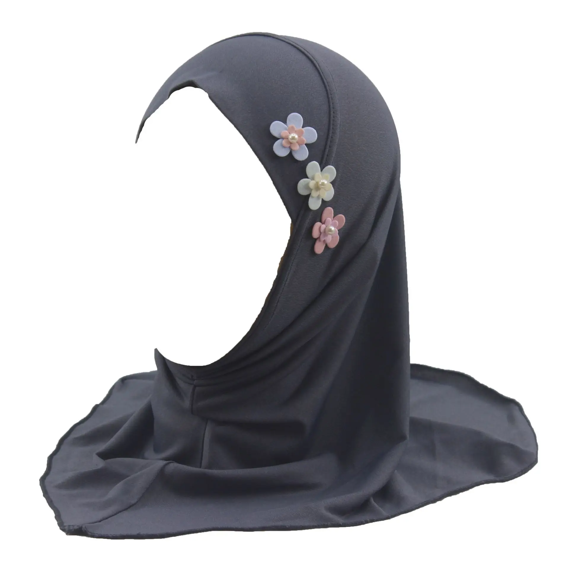 Islamic Kids Headscarf Ramadan Eid Amira Muslim Girls Hijab Flower Color In Random Arab Shawls Full Cover Flowers Turban Caps