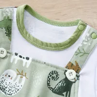 Adorable Infant Zoo Animal Print Romper for Boy Newborn Baby Faux Two-Piece Bodysuit with Short Sleeves Casual Play Wear