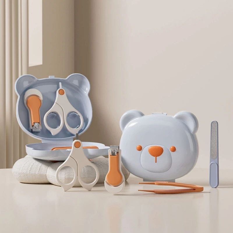 5 in 1 Design baby nails trimming tool, including nails trimmer, nails scissors, tweezer, and nails file with storage box.