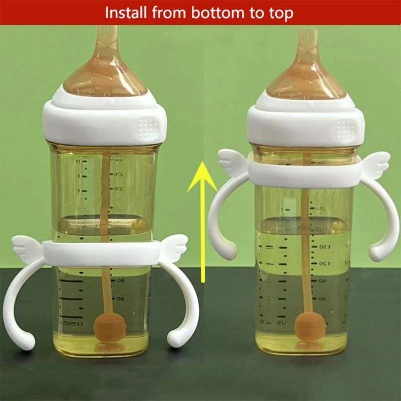 Round & Lovely Angel Wing Designs: Our baby bottle handle use pp-plastic material , which can withstand of different angles hand grip, non-deform by pressing, pulling, lovely angel wing and round design with perfect size suitable for baby using.