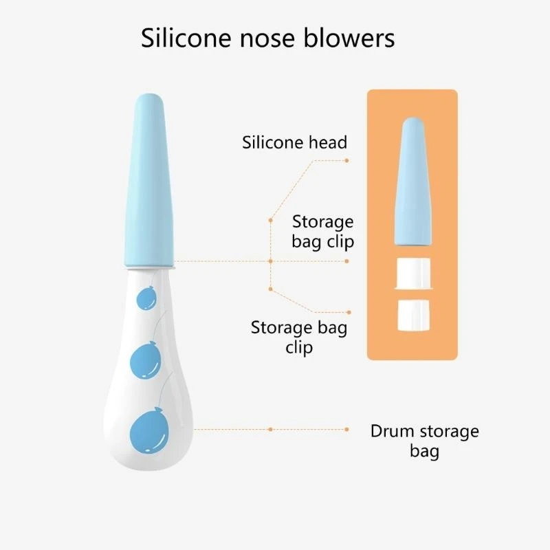 Baby silicone nose blowing exercising tool with 4pcs storage bags, easy to use.