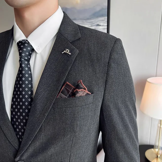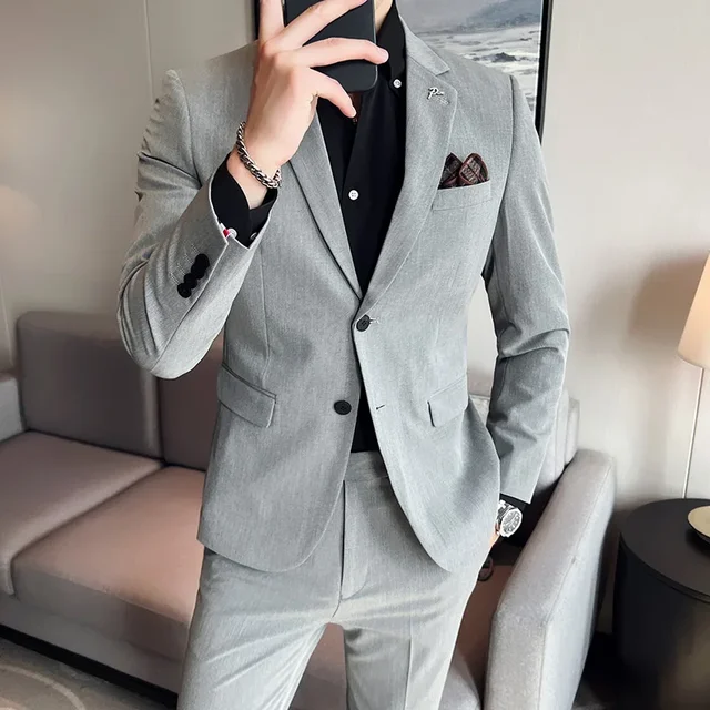 (Jacket + Pants) High End Brand Boutique Solid Color Mens Casual business office Suit Groom Wedding Dress