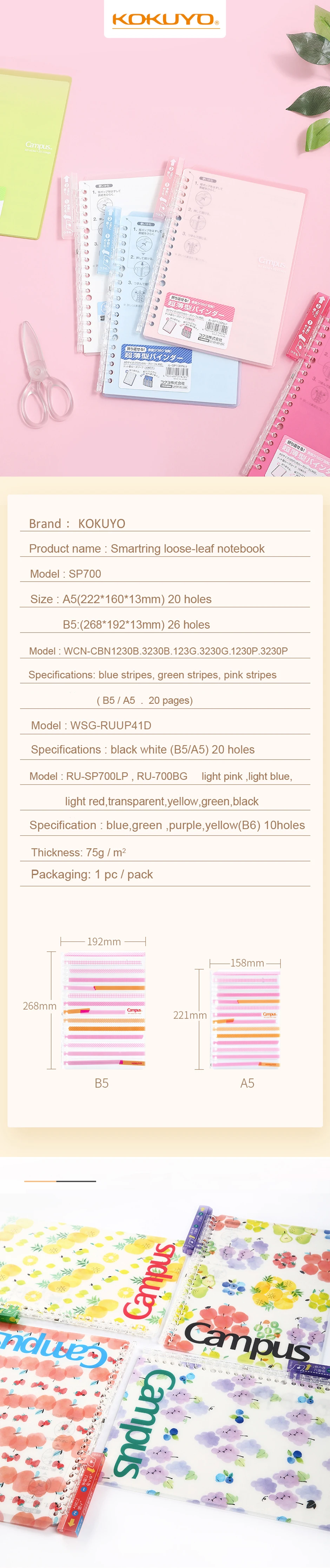 Japan KOKUYO Stationery Loose Book Foldable Two Core Ultra-thin Binder B5 / 26 Hole Binder Note book A5 / 20 Hole